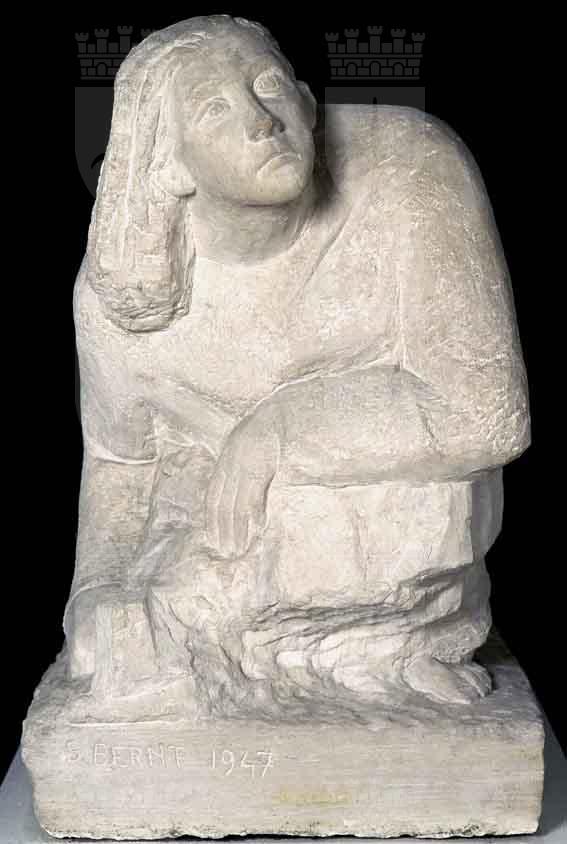 Dopo aver esposto questo Autoritratto nel 1947 alla sua prima mostra personale, allestita alla “Galleria Trieste” di Trieste, Sylva Bernt lo donò al Museo Revoltella. I critici dell’epoca avevano recensito l’opera con entusiasmo; Remigio Marini aveva scritto: «Quel blocco di tufo vicentino, da cui sembra essersi disviluppata potente e prepotente la figura di quella donna, ripiegata in un contenuto sforzo, ma che protende in alto la bella testa vibrante di passione e di pensiero come a vittoriosa sfida sulla materia ribelle... quel blocco di pietra superbamente animato e vivo può essere l’immagine di un’artefice e insieme di un’idea, il ritratto morale di una volontà e di un destino». All’epoca dell’esecuzione, Sylva Bernt, nata a Gorizia da un famiglia di antiche origini magiaro-scandinave, aveva trentasette anni e un importante percorso artistico alle spalle. Formatasi in un clima culturale tipicamente mitteleuropeo, nel quale erano nati i suoi interessi per la letteratura, la musica, la danza e il teatro, si era trasferita a Venezia con la sorella Alma (coreografa, amica di Tancredi, Music e Cadorin) e qui, nel 1940, si era diplomata con Arturo Martini all’Accademia di Belle Arti e due anni più tardi aveva esposto per la prima volta alla Biennale. Oltre a rispecchiare efficacemente il temperamento dell’artista per il rigore plastico e l’energica scansione delle masse, rivela l’attenzione della Bernt alle forme massicce e squadrate della plastica medievale e ricorda nell’impostazione le figure stilofore di Arnolfo di Cambio. In un autoritratto precedente, esposto alla Mostra Sindacale della Venezia Euganea del 1943, la stessa autrice aveva limitato l’auto-rappresentazione alla sola testa e conferito grande forza comunicativa all’espressione del volto, stilisticamente caratterizzato dall’influenza martiniana. Una decisiva evoluzione stilistica nell’arte della Bernt era avvenuta dopo il suo trasferimento a Parigi, dove era stata chiamata nel 1952 per decorare la cappella del transatlantico “Bretagna” ed era rimasta fino alla morte, nel 1995. Al contatto diretto con gli artisti parigini si può, infatti, far risalire il suo avvicinamento al Nouveau Réalisme caratterizzante la sua ultima produzione.