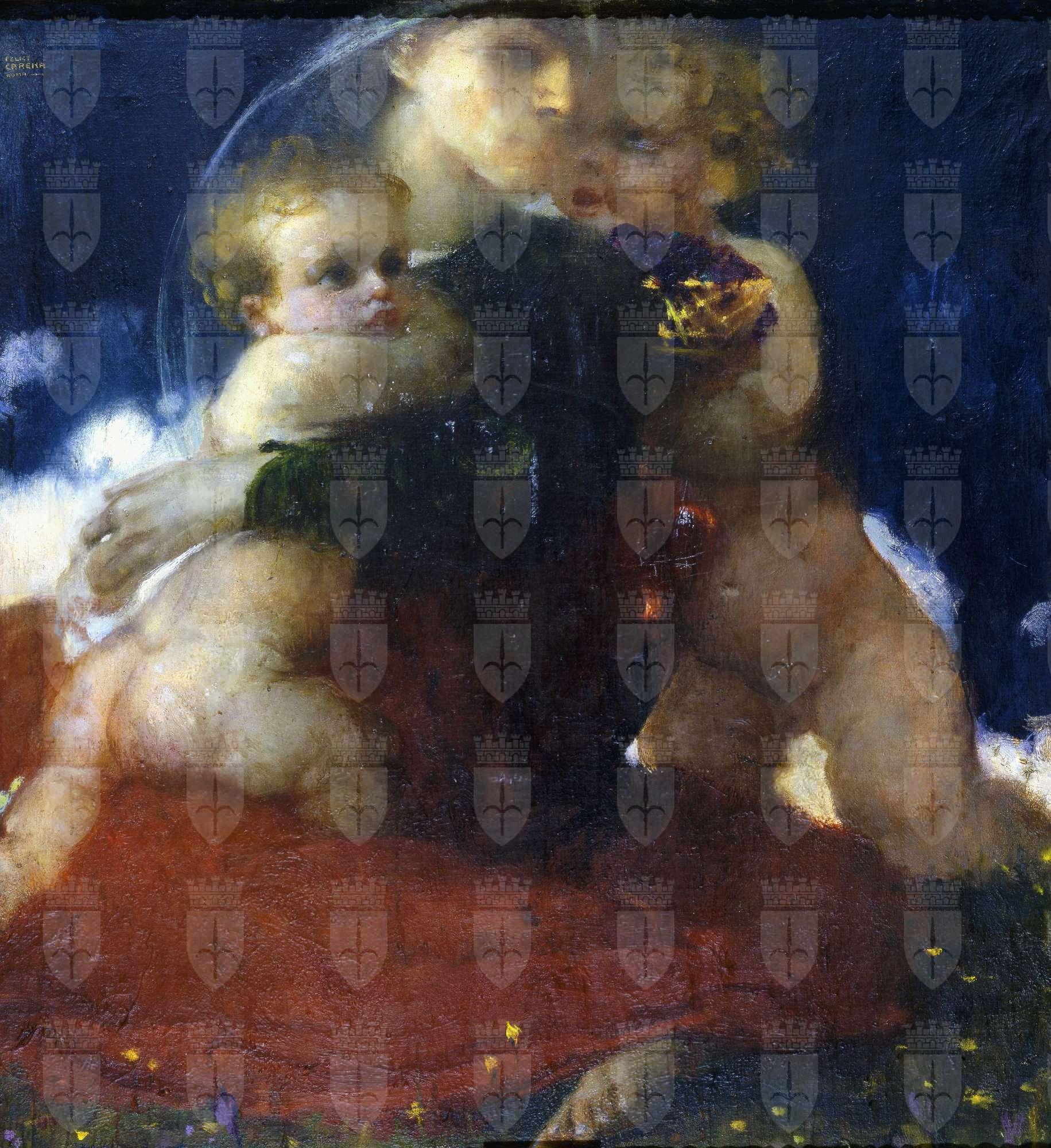 Madonna rientra nella serie di 21 opere presentate da Carena alla Biennale del 1912 (ma Perocco sottolinea come in realtà ve ne fossero 22: un Autoritratto fu aggiunto più tardi; Perocco, 1974, p.8). La personale, organizzata anche grazie all'interessamento di Augusto Ferrero, raccoglieva i lavori realizzati dall'artista negli ultimi tempi, quando si trovava a Roma dopo aver vinto il Pensionato nazionale, nel 1906, con il quadro La rivolta. Ferrero scrisse a Fradeletto il 24 ottobe 1910: “Ecco intanto che ti vengo a chiedere: Vorresti, per il 1912, dare una parete a Carena? Una parete non una sala. Egli non intende partecipare alla Mostra romana del 1911: e, invece, vorrebbe affermarsi degnamente a Venezia dove ebbe le prime e maggiori soddisfazioni” (Archivio Storico Arti Contemporanee, Fondo storico, SN busta n.37, fasc.5, Carena Felice, p.5). L'attenzione destata alla Biennale del 1909, allorché Carena espose due dipinti – una Vittoria, molto apprezzata da Pica, e i Viandanti, poi acquistati dalla Galleria Marangoni di Udine – e l'interesse suscitato da Roma, nel 1910, dai suoi studiati cromatismi, non gli risparmiarono in occasione della personale veneziana qualche nota critica. Damerini vide in Carena “giovane pieno di promesse ma dalla ispirazione ancora diseguale, incerta sulle orme di maestri dissimili tra loro come ad esempio Eugène Carrière e Franz Stuck (Damerini, 1912), altri sottolinearono un certo “abuso della mobilezza” (Sandro, 1912). Tra la serie di bimbi dai “capelli rossicci” (alcune erano immagini della figlia Marzia), e i ritratti della baronessa Ferrero e del fratello del pittore, vi era un paio di oli aventi per tema la maternità. Le due tele andarono vendute: Madre venne acquistata dalla Galleria Nazionale d'Arte Moderna di Roma, mentre Madonna, confluì nelle collezioni del Museo Rivoltella. E se la prima fu un'opera apprezzata per il sapiente digradare dei toni grigi, il dipinto del Rivoltella venne descritto da Ometti come un “quadro fastosamente decorativo [..ove] il volto malinconico e sfumato della madre resta solo a soffrire sopra una festa di rossi, di verdi, di viola, contro un cielo turchino” (Oyetti, La decima Esposizione d'Arte a Venezia, Bergamo, Istituto Italiano di Arti Grafiche, 1912, p.19). La rassegna indubbiamente venne a collocarsi in un periodo di grande ricerca e maturazione stilistica di Carena, il quale ancor giovane e dopo gli esordi accademici con Giacomo Grosso, si era volto a tematiche di tipo simbolista – anche grazie ai contatti col Bistolfi con lo scrittore Arturo Graf – e intimista, con una predilezione per soggetti “improntati a tenerezza di sentimenti e malinconia” (Perocco, 1979). In questo percorso l'artista guardò a Böcklin e ai moderni spagnoli, ma fondamentale fu soprattutto l'influenza del Carrière, dal quale il Carena mutuò la vaporosità del tocco, arricchendola, personalmente, con scelte cromatiche più accese laddove il maestro francese preferiva le penombre. Ometti, infatti, nonostante alcune perplessità, non esitò a ritrovare nel pittore le doti del grande “sinfonista. I colori sia a olio che a pastello egli li raggruppa, li vela, li fonde, li impone, li richiama a distanza con echi impensati e tenerissimi” (Ojetti, 1912, p.19). Nacquero così i “ritratti dall'intenso contenuto psicologico; scene familiari; delicata interpretazione della maternità e dell'infanzia: amoroso, fraterno senso di umanità; poetici fantasmi, e pura e schietta visione del vero” (Ferrero, 1912), della Biennale del 1912.