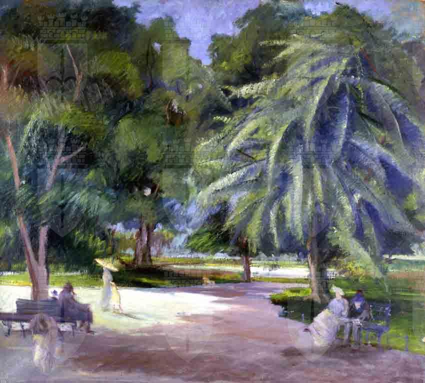 “Questo dipinto, pregevole per la sua struttura densa, spaziosa e luminosa, è opera autentica di Armando Spadini. La sua esecuzione, da situarsi intorno al 1910, risponde ai caratteri che distinguono la seconda maniera del pittore, elaborata tra la fine del periodo fiorentino e il principio del periodo romano con le sue nuove esperienze pittoriche. Per questo, sotto il rapporto tecnico, esso costituisce un'espressione relativamente inconsueta e singolare nella serie dei paesaggi spadiniani.” Con queste parole si esprime Enrico Somarè, nel maggio del 1940, riguardo al dipinto dell'artista toscano pervenuto al Museo Revoltella l'anno seguente, con permuta mediata dalla Galleria Trieste. La lettera di autentica del Professor Somarè, conservata presso l'archivio del Museo, 30 gennaio 1941, individua negli anni intorno al 1910 (anno di insediamento di Spadini a Roma) il periodo probabile di esecuzione del dipinto Il Pincio, anche se, è abbastanza certo, che il cosiddetto ciclo delle vedute di Villa Borghese e del Pincio fu realizzato, più esattamente, tra il 1913 e il 1915. Il 1913, momento cruciale per l'evoluzione del linguaggio pittorico di Spadini, è l'anno della sua partecipazione alla prima Secessione romana e dell'impatto diretto con le opere della pittura impressionista, in quella occasione presente con un'ampia scelta di opere accanto ai maggiori esponenti della pittura fauve. “L'impatto è assai forte ed egli pur dipingendo in quell'anno alcune delle più belle e note vedute di villa Borghese, si trova costretto, dalle esperienze fatte, a ripensare a tutto il suo modo di fare pittura.” (P. Rosazza Ferraris, 1983). Più tardi, in una lettera indirizzata ad Ugo Ojetti (1919), l'artista disconoscerà quel che egli definiva “mezzo periodo di impressionismo” e che, tuttavia, caratterizza con evidenza tutta la sua produzione tra il 1913 e il 1917. Scrive ancora Corrado Pavolini nel 1930: “Se si riflette che, per motivi di tempi, l'«avventura» tecnica di Spadini è l'impressionismo, l'accento di queste tele non può mancar di profondamente stupire: tanto vi traspare, al di là dell'attenzione cromatica data alle apparenze dell'ora, la ben più profonda preoccupazione di mantenere alla veduta l'augusto disteso respiro delle sue masse grandiose […]” Analogamente, nella veduta del Museo Revoltella, le “masse grandiose” degli alberi mantengono la loro fiera solidità grazie ad una stesura pittorica “densa e rilevata”, che sovrasta le figure sottostanti appena sbozzate, colte ciascuna nelle diverse gradazioni di una discreta luminosità. Oltre al dipinto Il Pincio, concesso in prestito alla Gemäldegalerie di Vienna nel 1964 per una mostra sui giardini e parchi nelle rappresentazioni pittoriche (Verbale del Curatorio, 26 maggio 1964), un'ulteriore opera di Spadini (mai pervenuta nelle collezioni museali) era stata sottoposta all'attenzione di Edgardo Sambo nel 1931, allora Direttore del Museo Revoltella: un Paesaggio con tre alberi in primo piano, pubblicato nella monografia di Adolfo Venturi (cat. N. 402) e già proprietà del senatore Malagodi (archivio del Museo Revoltella, lettera di Virginia Guglielmi del 22 giugno 1931), di cui il Museo possiede la sola riproduzione fotografica in bianco e nero.