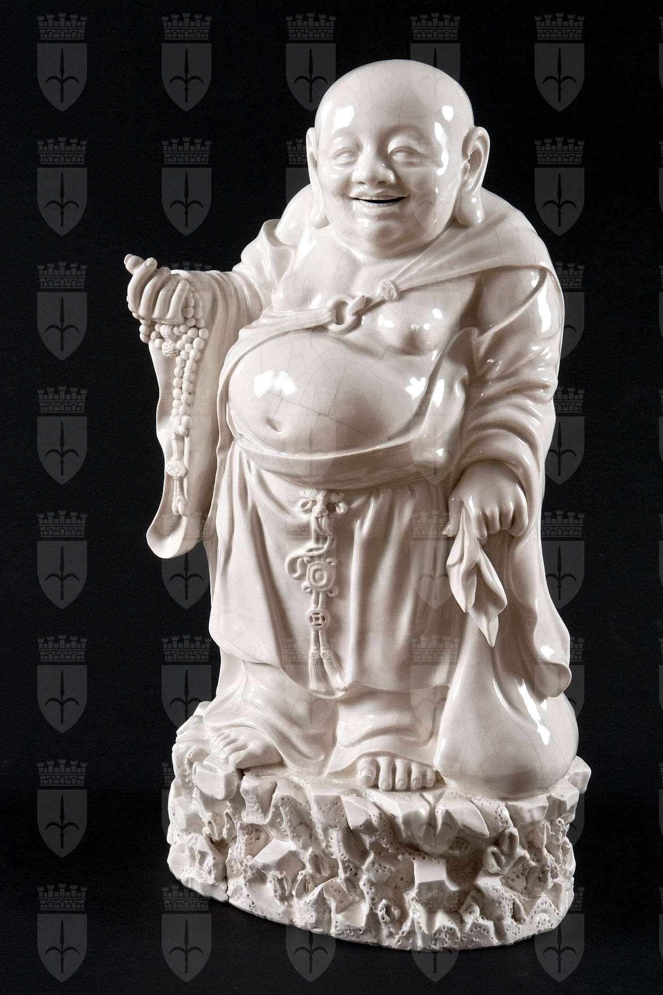 Budai, il cui nome letteralmente significa "sacco di tela", è considerata la divinità dell'abbondanza, della soddisfazione e dell'accontentarsi di ciò che si ha. Il Budai è uno dei Bodhisattva del pantheon buddhista, in Cina è considerato come una incarnazione di Maitreya, il Buddha del futuro. Viene sempre raffigurato sorridente, con gli attributi del sacco e del rosario buddhista, e dotato di una grande pancia, allegoria della sua grande bontà. In Giappone è chiamato Hotei, ed è uno dei sette Shichifukujin, le Sette Divinità della Buona Fortuna. Un esemplare del tutto identico a quello presente nelle collezioni del Civico Museo di Arte Orientale si trova anche al British Museum di Londra. Queste statuette si diffusero largamente sia nei mercati orientali che in quelli occidentali.