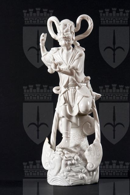 Kui Xing è la divinità taoista preposta alla letteratura e agli esami, ma anche la stella principale del gruppo di stelle detto “Kui”, la parte trapezoidale della costellazione dell’Orsa Maggiore. Divinità dall’aspetto demoniaco, è raffigurato con i capelli in ciocche a forma di corna ai lati della testa e generalmente scalzo, a bocca aperta e con il viso butterato, mentre regge nella mano sinistra un rotolo o una tavoletta (oppure un lingotto d’oro o d’argento, simbolo dei guadagni successivi al superamento degli esami) e nella destra un pennello (entrambi mancanti). Colto in una posizione dinamica, si regge in equilibrio con il piede destro sopra un pesce-drago, mentre sul piede sinistro, slanciato all’indietro, sorregge una misura per il grano, simboleggiante un contenitore di saggezza e ispirazione.