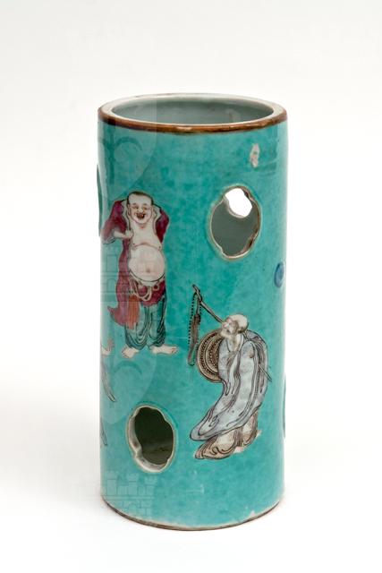 Alti vasi cilindrici in porcellana adibiti a portacappelli apparvero per la prima volta durante il regno Jiaqing (1796-1820). A partire dal regno Daoguang (1820-1850) e fino a tutto il regno Tongzhi (1861-1875) molti di questi oggetti presentano fori di ventilazione, allo scopo di favorire il ricambio d’aria e ed evitare la stagnazione di cattivi odori all’interno del cappello, che veniva posto alla sommità.