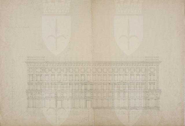 Il disegno in esame appartiene al "Progetto per l'edificio della Riunione Adriatica di Sicurtà", cfr. schede CMSAOAR10_4176-CMSAOAR10_4206. Agli inizi del Novecento il direttore generale della Riunione Adriatica di Sicurtà, Adolfo de Frigyessy, e suo figlio Arnoldo, decisero di realizzare una nuova sede di rappresentanza per la compagnia a Trieste. Acquistato un ampio lotto già edificato tra la piazza Nuova e le vie S. Caterina, S. Antonio e il Corso, e demolite le precedenti costruzioni, indissero nel luglio 1909 un concorso internazionale a inviti per la progettazione di un nuovo palazzo. Oltre a Ruggero e Arduino Berlam, vi parteciparono gli architetti Ignác Alpar, Ludwig Baumann, Max Littmann, Luigi Broggi, Giacomo Zamattio, Giorgio Zaninovich, Enrico Nordio e Ludovico Braidotti. Nel bando si richiedeva che il palazzo contenesse un semi-sotterraneo, un piano elevato, un ammezzato, tre piani superiori più un sottotetto; ma non si davano indicazioni sulla distribuzione interna degli ambienti e su requisiti tecnologici. Nel novembre 1909 la giuria selezionò, tra i progetti pervenuti, quelli di Alpar, Zammattio e dei Berlam (Lettis in Rovello 2007, p. 312) per la seconda fase del concorso. Tuttavia Zammattio e Alpar non si presentarono, cosicché lo studio Berlam, unico rimasto fra i selezionati, ricevette l’incarico. Seguì una fase in cui Ruggero e Arduino Berlam vennero costantemente seguiti dalla committenza nell’elaborazione dell’assetto generale e di ogni minuto dettaglio dell’edificio. La direzione della compagnia assicurativa voleva che lo stabile fosse destinato per metà a sede della società, cioè verso la Piazza Nuova (odierna Piazza della Repubblica); mentre il lato opposto, verso il Corso, fosse adibito a negozi, al pianterreno, e abitazioni. Anche il piano prospiciente la via S. Antonio (attuale via Dante) era riservato agli esercizi commerciali. Il progetto definitivo dei Berlam, datato 2 dicembre 1910, venne approvato dal Magistrato civico il 12 gennaio 1911; il permesso di fabbrica è del 28 giugno 1911. L’Impresa Carlo Bonetti costruì il palazzo, che fu inaugurato il 7 aprile 1914. Si tratta di un capolavoro del tardo eclettismo europeo, in cui si recuperano gli stilemi della tradizione architettonica del tardo Cinquecento. Nel palazzo, articolato in cinque piani, gli architetti si sono rifatti all’architettura “di facciata, ai palazzi italiani del secolo XVI” (Berlam cit. in Lettis in Rovello 2007, p. 313, nota 9). Quanto al disegno in esame, esso illustra, al recto, il prospetto laterale dell'edificio prospiciente la via Santa Caterina. Mostra affinità compositive con i disegni CMSAOAR10_4202, dedicato all'affaccio su via Sant'Antonio (attuale via Dante), e con CMSAOAR10_4196, relativo alla facciata principale. Come messo in luce dalla critica, tra queste facciate vi è una continuità di soluzioni formali, che contribuisce all’unitarietà tra le due metà dell’edificio, ossia alla parte destinata a sede sociale e a quella da destinare a locazione commerciale. Un altro disegno progettuale per la facciata su via Santa Caterina si conserva presso l'Archivio storico Allianz-Ras (cfr. Madotto 2008, p. 96). Il disegno sul verso è da riferirsi alla progettazione del cancello per la villa Lazarovich-Vianello di via Tigor 23, la cui esecuzione si data al 1911 (Pozzetto 1999, p. 246).