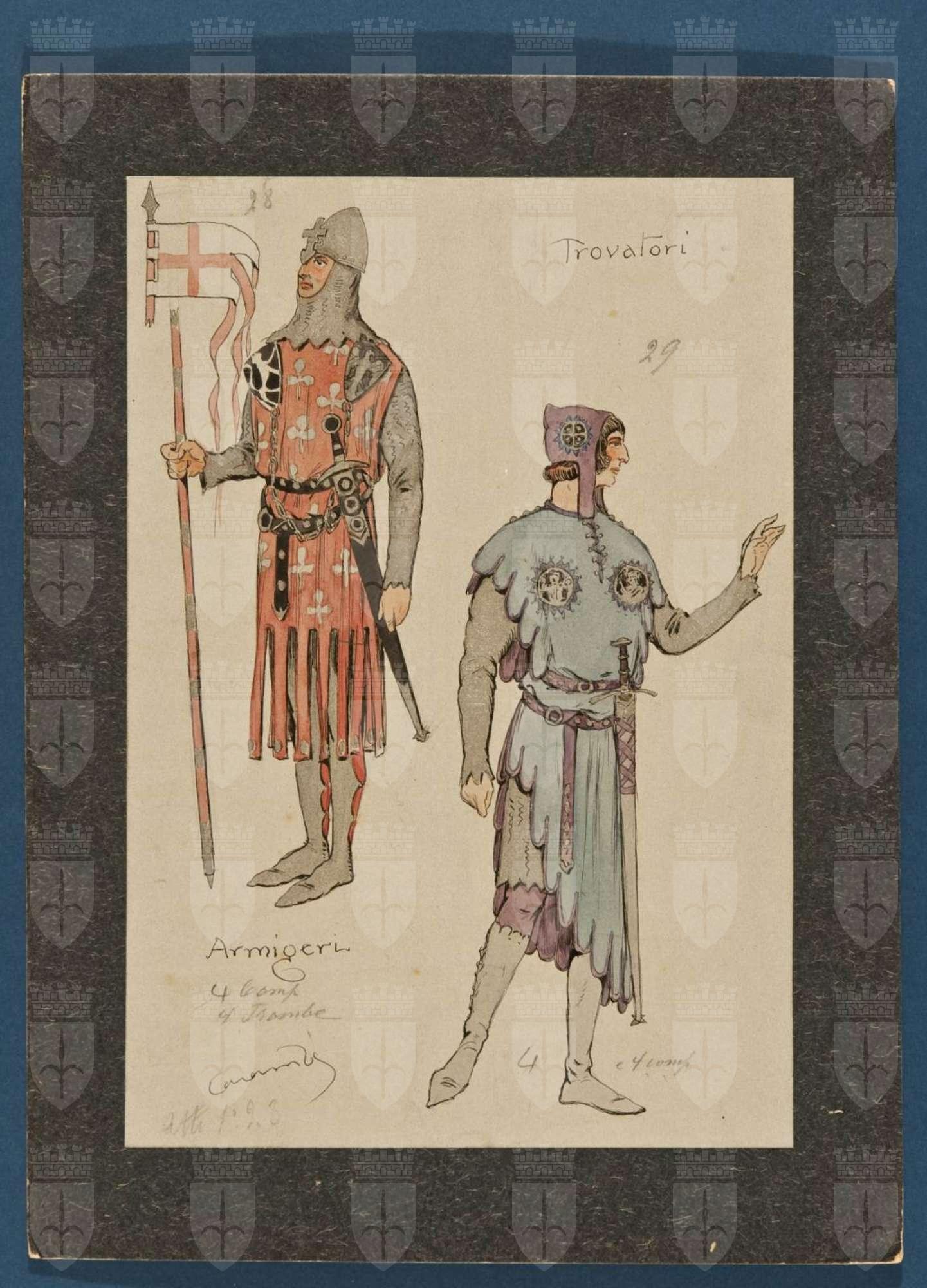 Melisenda, azione lirica di Carlo Merli, figurino per trovatori e armigeri