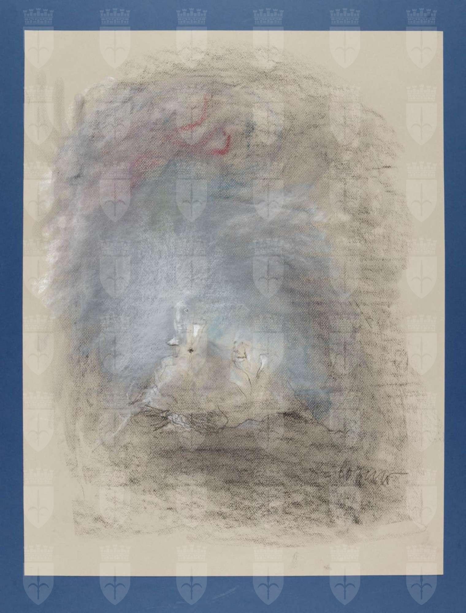 Nebulosa grigia con due figure accennate al centro