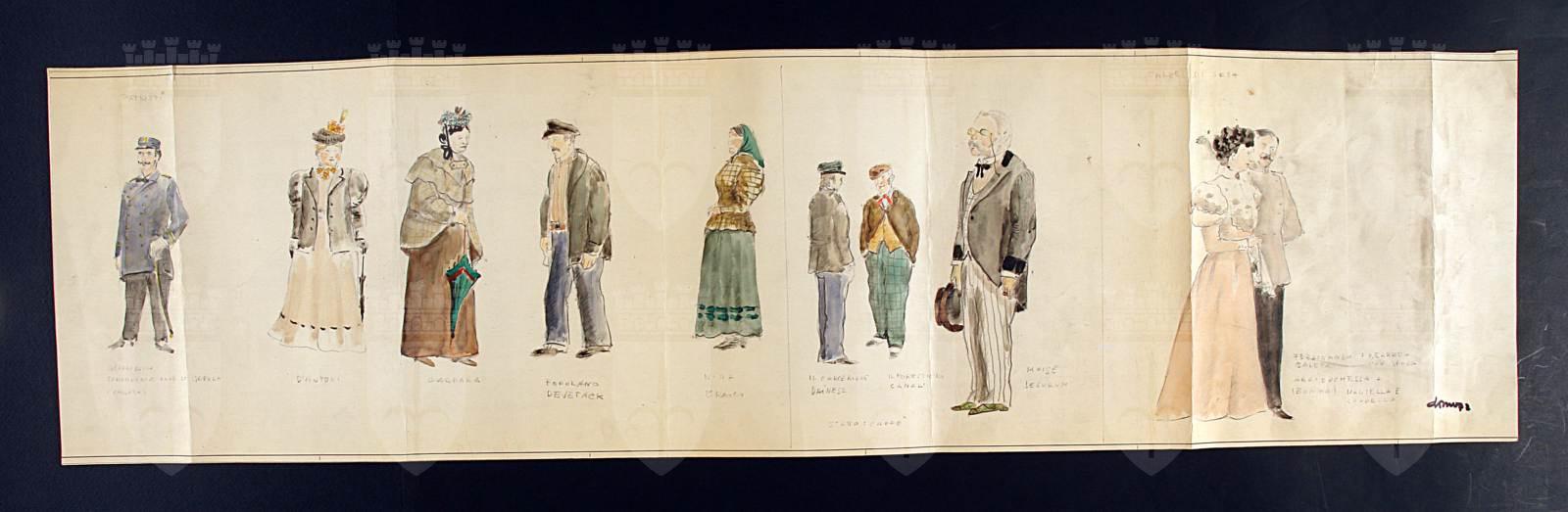 Noi delle vecchie province, di Lino Carpinteri e Mariano Faraguna, figurini per dieci costumi per personaggi diversi, 1. atto, Caffè