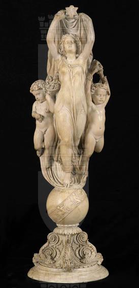 Citata negli inventari museali come Figura allegorica, la giovane donna che si svela, librandosi in aggraziato equilibrio sulla sfera celeste percorsa dalle costellazioni e con il capo ornato dalla stella mattutina, va identificata con Il Mattino. Costituisce una delle invenzioni più fortunate di Dankberg, presentata anche all’Esposizione Universale di Parigi del 1855 e conservata in diversi esemplari, tra cui quello della Nationalgalerie di Berlino (inv. B I 619) e del castello di Sanssouci a Potsdam (Skulpt.slg. 2459), dove è accompagnata anche dal pendant della Notte. La slanciata figura, finemente drappeggiata, è affiancata da due genietti alati, uno recante una cornucopia ricolma di rose, attributo dell’aurora, e l’altro in atto di accendere due fiaccole, simboleggianti il giorno nascente. Dankberg fu il fondatore nel 1843 a Berlino di un atelier di decorazione architettonica, che collaborò con i principali architetti berlinesi, tra cui Friedrich Hitizg, per il quale realizzò, tra l’altro, l’ornamentazione per la Nuova Borsa di Berlino. Come già ipotizzato (Crusvar), l’ingresso del Mattino nella collezione Revoltella va messo in relazione con l’ambiente di Hitzig. In occasione di questa ricerca è stato possibile attribuire a Dankberg la paternità degli stucchi decorativi di Palazzo Revoltella, cui lavorò con tutta probabilità a partire dall’aprile del 1856, quando arrivò a Trieste al seguito di Hitzig («Il Diavoletto» 1856). A Dankberg vanno altresì ascritte le «quattro statue di terra cotta di Berlino rappresentanti l’Agricoltura, l’Orticoltura, la Pesca e l’Industria » (Boschetti), che ornano il parterre di Villa Revoltella ai piedi della grande serra, sinora prive di paternità. Si tratta in realtà delle allegorie di Raccolto, Concordia, Pesca e Operosità (Industria), ricordate tra le più fortunate realizzazioni di Dankberg e replicate più di 2.000 volte. Per analogia con gli oggetti in fusione di zinco prodotti dal suo Istituto di Berlino, potrebbero essere ascritti a Dankberg anche i «Due grandi vasi bronzo di Berlino figurati» dell’atrio di Palazzo Revoltella, nonché i «Quattro vasi bronzo di Berlino con giochi d’acqua» della Sala neopompeiana del secondo piano, come vengono citati negli inventari, e la fontana con la ninfa (forse la sua celebre Eco) nella serra di Villa Revoltella.