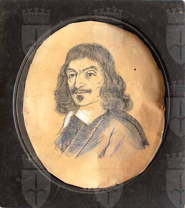 Nel registro inventariale, al presente numero, è descritto un ritratto in miniatura su avorio di “Ufficiale ignoto - busto/ divisa di epoca napoleonica”, firmato lungo il margine destro “A. Castro fecit”, pervenuto nelle collezioni civiche il 23 luglio 1932. L'opera era posta in una cornice nera con cerchietto dorato. Tuttavia attualmente, al numero inventariale in oggetto corrisponde un’effigie a stampa del filosofo francese René Descartes, tratta con tutta probabilità da una pubblicazione ottocentesca.