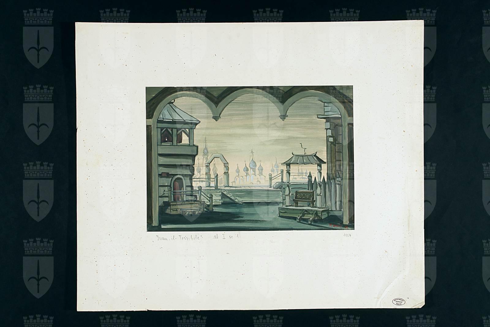 Bozzetto scenografico per Pskovitianka (Ivan il terribile), opera di Nikolaj Andreevič Rimskij-Korsakov, prima rappresentazione 13 gennaio 1968, Teatro Comunale Giuseppe Verdi Trieste, regia di Mladen Sablic