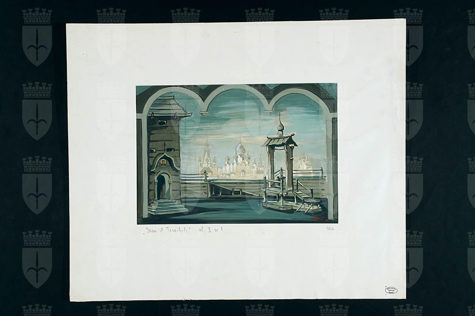 Bozzetto scenografico per Pskovitianka (Ivan il terribile), opera di Nikolaj Andreevič Rimskij-Korsakov, prima rappresentazione 13 gennaio 1968, Teatro Comunale Giuseppe Verdi Trieste, regia di Mladen Sablic