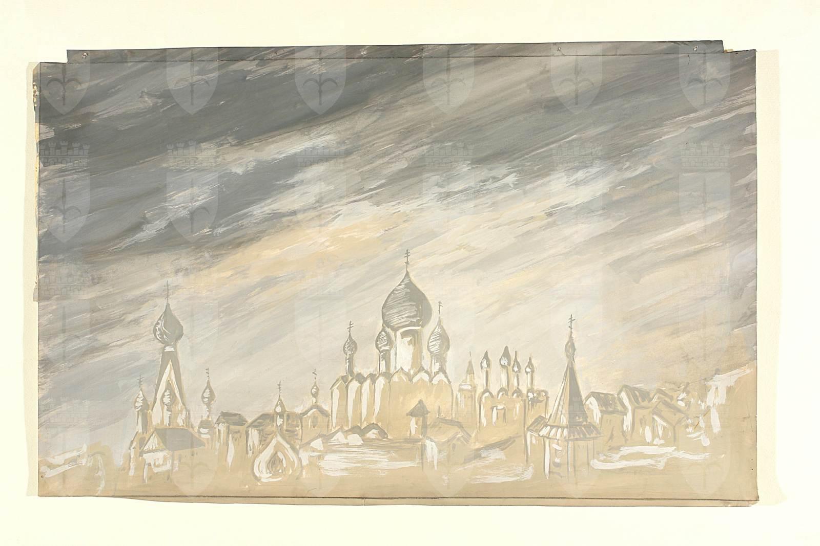Bozzetto scenografico per Pskovitianka (Ivan il terribile), opera di Nikolaj Andreevič Rimskij-Korsakov, prima rappresentazione 13 gennaio 1968, Teatro Comunale Giuseppe Verdi Trieste, regia di Mladen Sablic