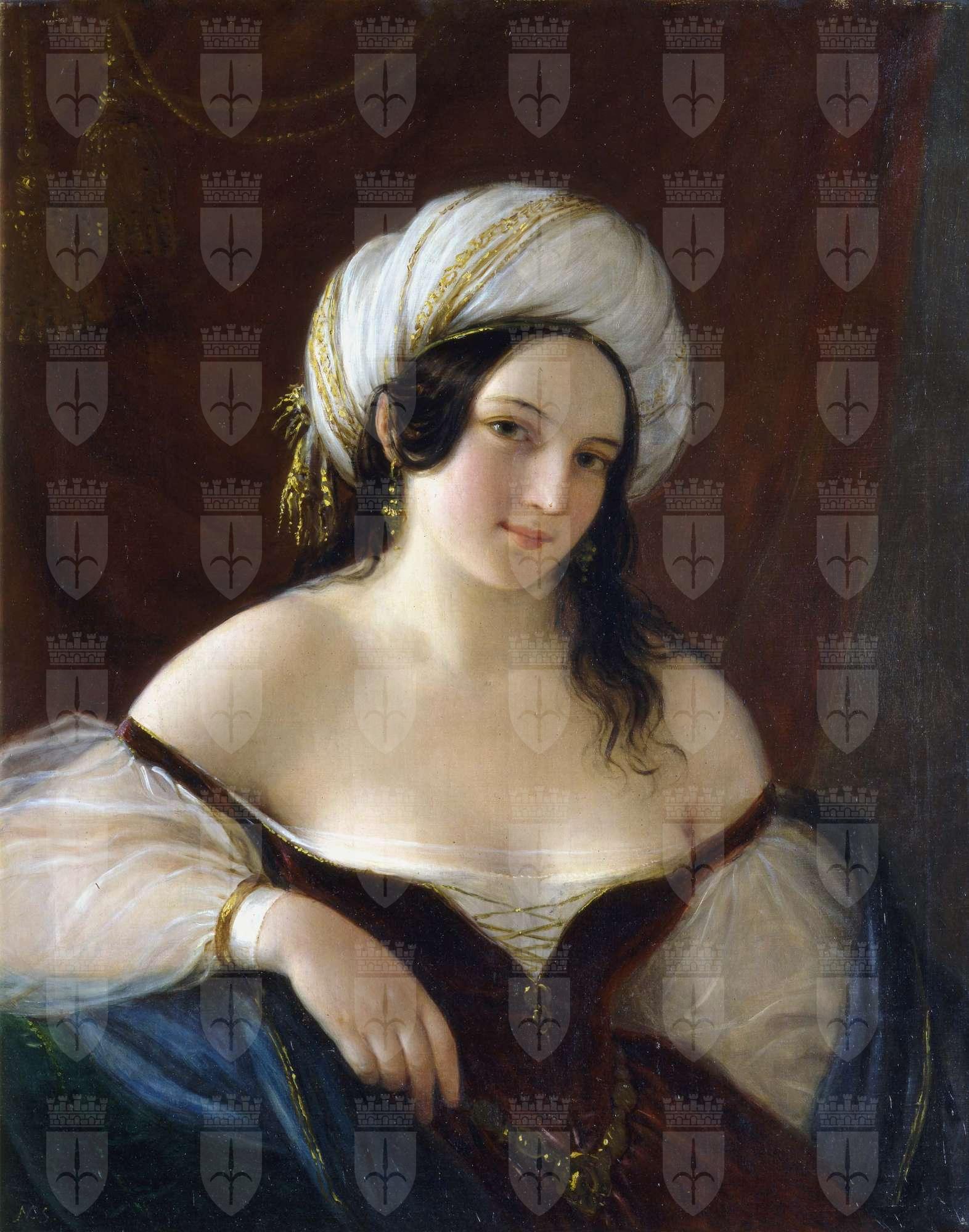 Si tratta di uno dei soggetti più richiesti dalla clientela di metà Ottocento e venne in più occasioni replicato dall'artista. In questa versione del Revoltella l'esotismo di superficie - e per così dire "da mascherata" - della consueta mezza figura femminile si fonde con l'ammiccante sorriso e l'occhiata intrigante. La ricercata sensualità del giovane busto alabastrino, che spicca sugli effetti di trasparenza delle maniche, sul lucore degli orpelli appuntati all'abito di velluto rosso e sulla grazia dei monili preziosi indossati dalla ragazza, deve aver affascinato Pasquale Revoltella che acquistò l'opera, probabilmente sulla metà degli anni quaranta del secolo.