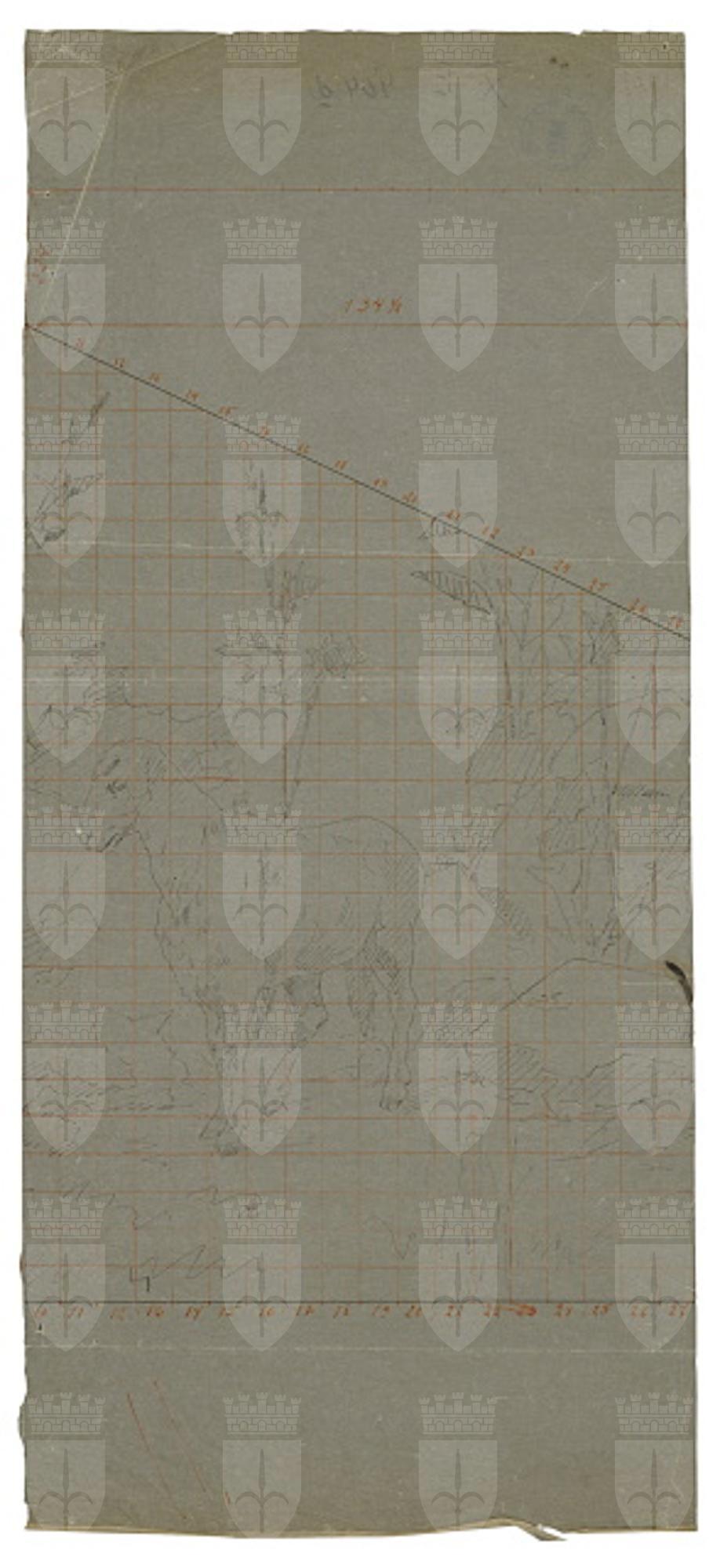 Disegno a penna, quadrettato, con il bozzetto parziale per un affresco con Il Buon Pastore.