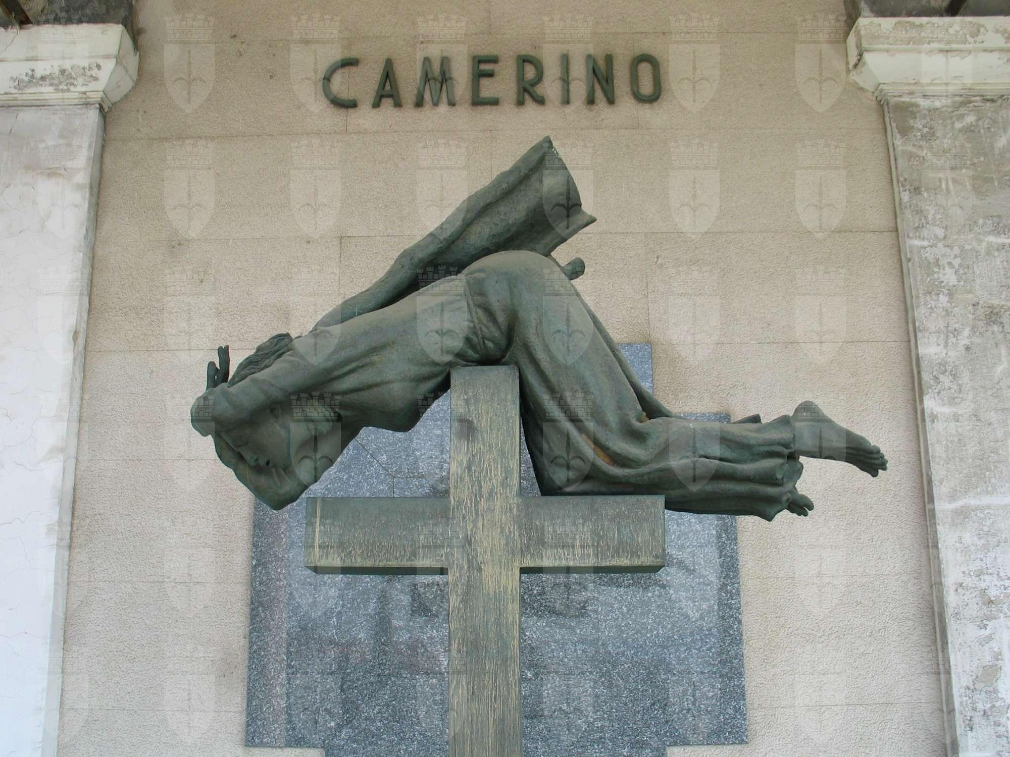 Gruppo scultoreo in bronzo composto da una grande croce alla sommità della quale è appoggiata sul ventre una figura femminile che porta le mani incrociate all'altezza della fronte e indossa una semplice veste lunga fino ai piedi, stretta in vita da una corda. Sulla parete di fondo è presente una croce realizzata con lastre in marmo verde.