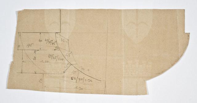 Si tratta di uno dei disegni progettuali del Faro della Vittoria, eseguiti da Arduino Berlam, che li donò ai Civici Musei di Storia ed Arte nel 1935, cfr. le schede da CMSAOAR06_3598 a CMSAOAR06_3634. In particolare, esso riguarda verosimilmente un dettaglio esterno della struttura. Quanto alle vicende storico-critiche del Faro della Vittoria, si rinvia alla scheda CMSAOAR06_3598.