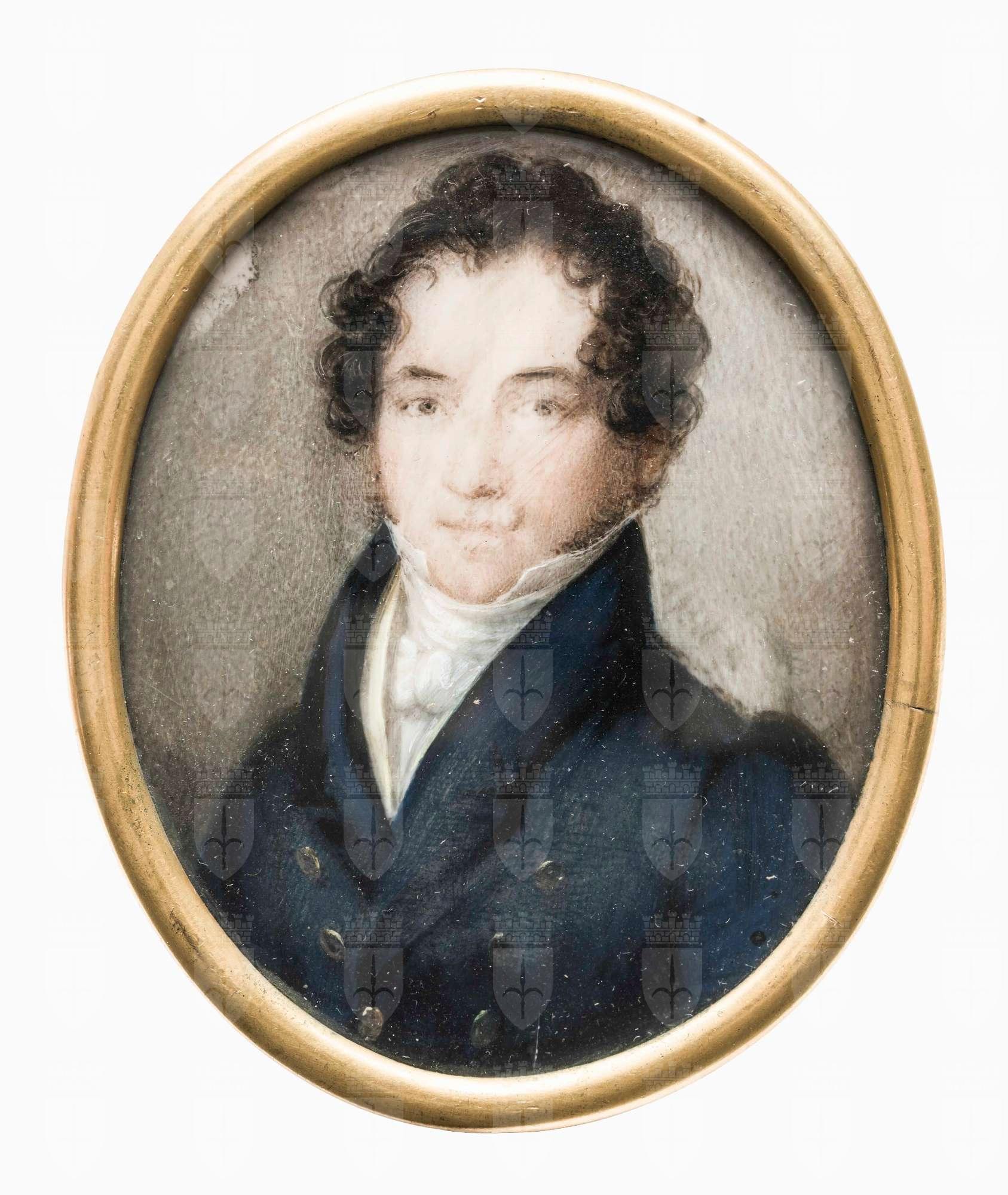 Ritratto in miniatura verosimilmente pervenuto attraverso il legato Sartorio nel 1947, cfr. Ritratti a Trieste 1993, p. 11. L’uomo è ritratto con una marsina blu su un panciotto giallo, camicia bianca a collo alto e cravatta anch'essa bianca. Corti riccioli incorniciano il volto, secondo la moda “alla Brutus”, diffusa tra i due secoli. Il fondo grigio è sfumato a tratteggio. Seppur difficilmente giudicabile per il mediocre stato di conservazione, il naturalismo con cui è realizzato il volto colloca la miniatura in ambito italiano verosimilmente entro il primo quarto del XIX secolo.