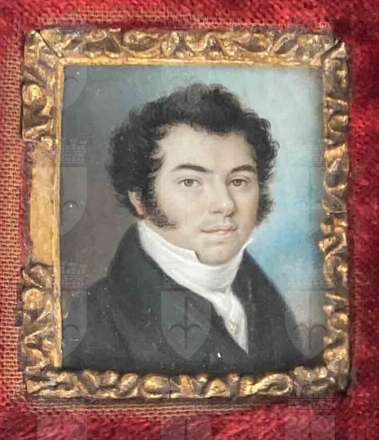 La miniatura ritrae verosimilmente Pietro Sartorio (Trieste 1796-1890), figlio di Pietro e Brigida Borea d’Olmo. Avviato alla carriera mercantile, nel 1816-17 fondò con il fratello Giovanni Guglielmo la filiale di Odessa, che guidò fino al 1829. Nel 1834 sposò Giuseppina Fontana, dalla quale ebbe quattro figli. Si impegnò nella vita pubblica, sostenendo la carica di consigliere municipale (1842-1861), di presidente municipale (1869). Per un profilo si rinvia a Resciniti 2010, pp. 77-80.