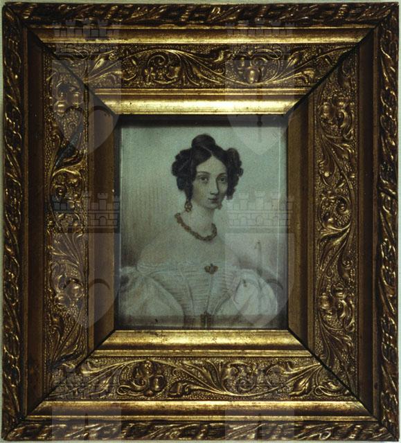 Il ritratto in miniatura è giunto alle collezioni civiche triestine nel 1936, con il legato Emilia Zamboni, insieme al suo pendant, il ritratto di Antonio Zamboni (CMSA inv. 13/2309). Nell’inventario è censito come ritratto di Luisa Zamboni da giovane sposa. Luisa (o Luigia), nata Amadio, napoletana d’origine, sposò Antonio Zamboni attorno al 1825 e dalla loro unione nacque Filippo Zamboni (1826-1910). Dell’effigiata presso i Civici Musei di Storia ed Arte si conserva un ritratto di ambito viennese, eseguito prima delle sue nozze (inv. 13/2852) e uno dipinto a Roma da mons. Alessandro Zamboni, pittore dilettante (inv. 13/2794), oltre a dei ritratti fotografici con il figlio eseguiti da Vittorio della Rovere (inv. F028593) e a Vienna da Josef Lowy (inv. F014974).