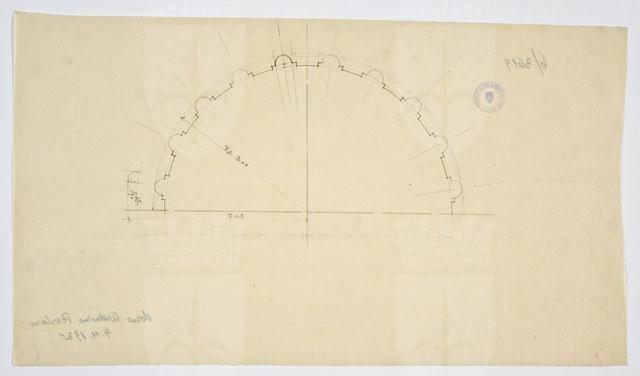Si tratta di uno dei disegni progettuali del Faro della Vittoria, eseguiti da Arduino Berlam, che li donò ai Civici Musei di Storia ed Arte nel 1935, cfr. le schede da CMSAOAR06_3598 a CMSAOAR06_3634. In particolare, raffigura la semi-planimetria della colonna-fusto del Faro della Vittoria. A partire dal 1919, Arduino Berlam lavorò alla progettazione del Faro della Vittoria, architettura celebrativa e simbolica, che rispondeva al desiderio di esaltazione della patria e dell’italianità di Trieste redenta, sorto dopo la Grande Guerra, e alla necessità di onorare i suoi caduti. Già durante il conflitto, Berlam aveva ipotizzato di erigere un faro in onore di Nazario Sauro, eroe del mare, sulla punta istriana di Salvore, a poca distanza da Capodistria (cfr. CMSAOAR06_3631). Tuttavia questa prima idea fu modificata a guerra conclusa, quando la Lega navale propose di costruire il faro a Trieste, per sostituire l’obsoleta lanterna di Pietro Nobile. Dal giugno 1919, quando il progetto di massima venne approvato dal Consiglio Superiore dei Lavori Pubblici a Roma, al 1927, quando il faro fu inaugurato, il suo iter costruttivo fu tormentato da problemi e ritardi causati da divergenze di ordine tecnico-artistico e dall’antagonismo contro Arduino Berlam. Edificato sulle fondamenta del forte austriaco Kressich, costruito sul colle di Gretta nel 1854, su progetto dell'architetto Karl Möring, il faro presenta una gradinata monumentale alla cui sommità si trova un solettone. Su di esso è posta la lapide con l'epigrafe dedicatoria «A. D. MCMXXVII / SPLENDI E RICORDA / I CADUTI SUL MARE / MCMXV – MCMXVIII». Il manufatto prosegue con uno zoccolo a campana da cui pende l'àncora del caccia-torpediniere Audace, che il 3 novembre 1918 attraccò sul molo triestino ad esso intitolato. Sull'avancorpo del ballatoio, da cui si innalza il fusto della colonna, poggia la statua del Marinaio ignoto, eseguita da Giovanni Mayer. La colonna, in cemento armato, è rivestita da blocchi di pietra di Orsera e termina con un capitello che sorregge il terrazzo su cui poggia la lanterna. Quest'ultima è circondata da un ulteriore ballatoio in ferro ed è coronata da una cupola di rame a squame, su cui svetta una Vittoria alata, opera anch'essa di Mayer, forgiata da Giacomo Sreboth.