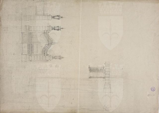 Il disegno in esame appartiene al "Progetto per l'edificio della Riunione Adriatica di Sicurtà", cfr. schede CMSAOAR10_4176-CMSAOAR10_4206. Agli inizi del Novecento il direttore generale della Riunione Adriatica di Sicurtà, Adolfo de Frigyessy, e suo figlio Arnoldo, decisero di realizzare una nuova sede di rappresentanza per la compagnia a Trieste. Acquistato un ampio lotto già edificato tra la piazza Nuova e le vie S. Caterina, S. Antonio e il Corso, e demolite le precedenti costruzioni, indissero nel luglio 1909 un concorso internazionale a inviti per la progettazione di un nuovo palazzo. Oltre a Ruggero e Arduino Berlam, vi parteciparono gli architetti Ignác Alpar, Ludwig Baumann, Max Littmann, Luigi Broggi, Giacomo Zamattio, Giorgio Zaninovich, Enrico Nordio e Ludovico Braidotti. Nel bando si richiedeva che il palazzo contenesse un semi-sotterraneo, un piano elevato, un ammezzato, tre piani superiori più un sottotetto; ma non si davano indicazioni sulla distribuzione interna degli ambienti e su requisiti tecnologici. Nel novembre 1909 la giuria selezionò, tra i progetti pervenuti, quelli di Alpar, Zammattio e dei Berlam (Lettis in Rovello 2007, p. 312) per la seconda fase del concorso. Tuttavia Zammattio e Alpar non si presentarono, cosicché lo studio Berlam, unico rimasto fra i selezionati, ricevette l’incarico. Seguì una fase in cui Ruggero e Arduino Berlam vennero costantemente seguiti dalla committenza nell’elaborazione dell’assetto generale e di ogni minuto dettaglio dell’edificio. La direzione della compagnia assicurativa voleva che lo stabile fosse destinato per metà a sede della società, cioè verso la Piazza Nuova (odierna Piazza della Repubblica); mentre il lato opposto, verso il Corso, fosse adibito a negozi, al pianterreno, e abitazioni. Anche il piano prospiciente la via S. Antonio (attuale via Dante) era riservato agli esercizi commerciali. Il progetto definitivo dei Berlam, datato 2 dicembre 1910, venne approvato dal Magistrato civico il 12 gennaio 1911; il permesso di fabbrica è del 28 giugno 1911. L’Impresa Carlo Bonetti costruì il palazzo, che fu inaugurato il 7 aprile 1914. Si tratta di un capolavoro del tardo eclettismo europeo, in cui si recuperano gli stilemi della tradizione architettonica del tardo Cinquecento. Nel palazzo, articolato in cinque piani, gli architetti si sono rifatti all’architettura “di facciata, ai palazzi italiani del secolo XVI” (Berlam cit. in Lettis in Rovello 2007, p. 313, nota 9). Quanto al disegno in esame, esso illustra, al recto, il prospetto laterale dell'edificio prospiciente la via Santa Caterina. Mostra affinità compositive con i disegni CMSAOAR10_4202, dedicato all'affaccio su via Sant'Antonio (attuale via Dante), e con CMSAOAR10_4196, relativo alla facciata principale. Come messo in luce dalla critica, tra queste facciate vi è una continuità di soluzioni formali, che contribuisce all’unitarietà tra le due metà dell’edificio, ossia alla parte destinata a sede sociale e a quella da destinare a locazione commerciale. Un altro disegno progettuale per la facciata su via Santa Caterina si conserva presso l'Archivio storico Allianz-Ras (cfr. Madotto 2008, p. 96). Il disegno sul verso è da riferirsi alla progettazione del cancello per la villa Lazarovich-Vianello di via Tigor 23, la cui esecuzione si data al 1911 (Pozzetto 1999, p. 246).