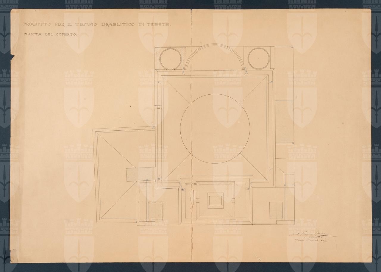 Tavola progettuale per il Tempio Israelitico in Trieste raffigurante la pianta del coperto.