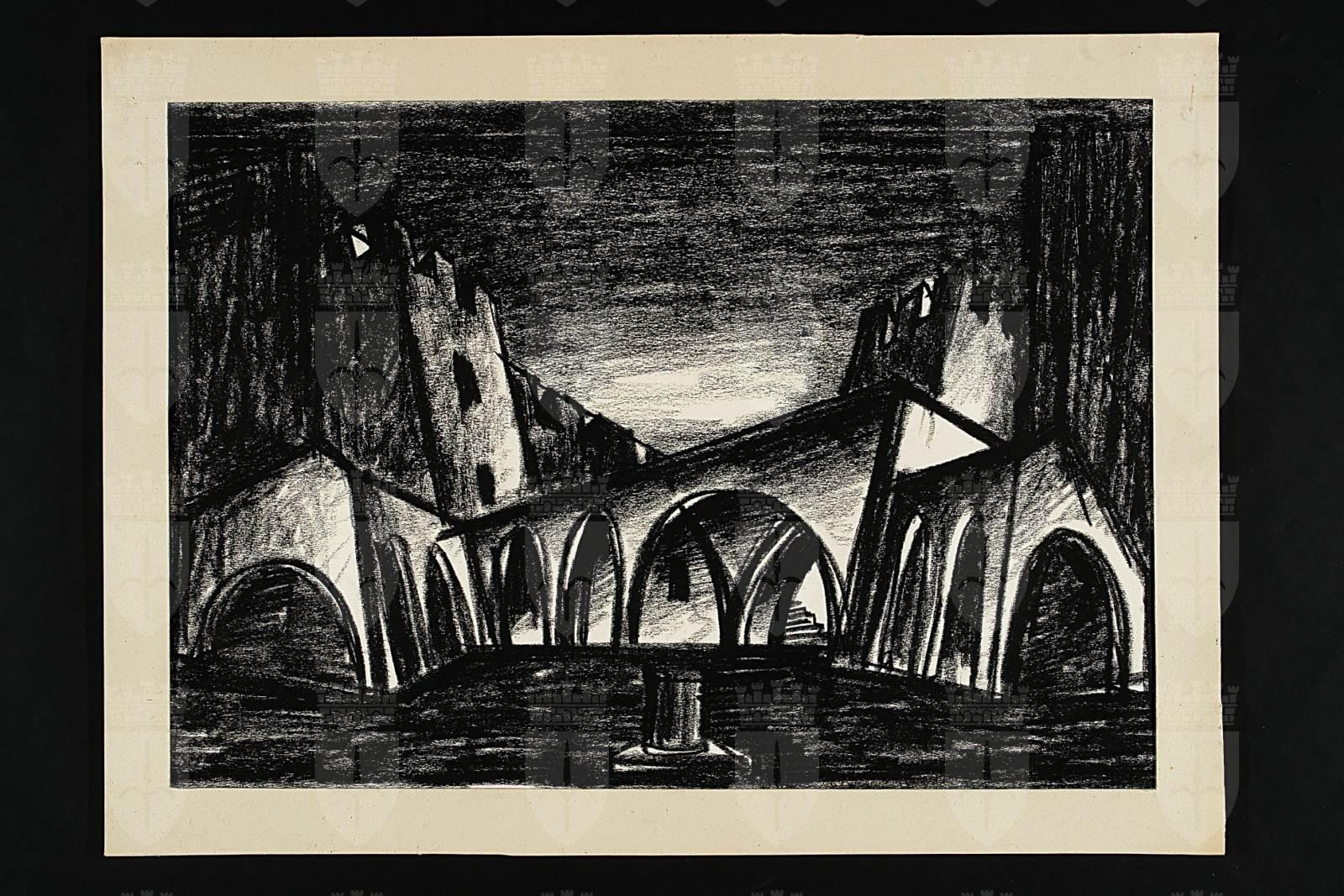 Scenografia per Romeo e Giulietta di Riccardo Zandonai, Teatro Comunale Giuseppe Verdi di Trieste, stagione lirica 1996-67, prima rappresentazione 17 marzo 1967, regia e scene di Gianrico Becher