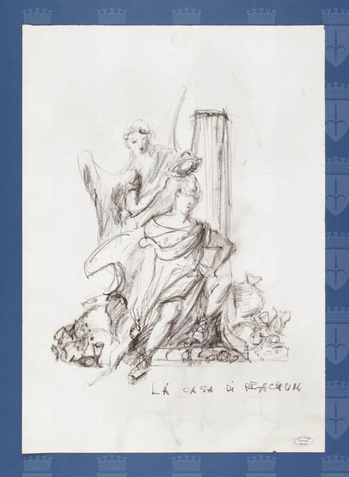 L'opera dello straccione, di Vaclav Havel, regia Fulvio Tolusso, gruppo figurativo di arredo con figura maschile assisa e angelo