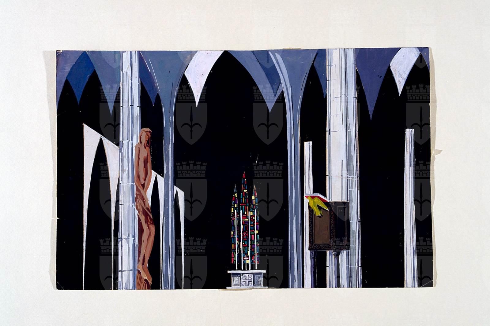 Assassinio nella cattedrale, di Thomas Stearn Eliot, regia di Franco Enriquez, scene di Marcello Macherini e Dino Predonzani, Trieste, Teatro Nuovo, 17 gennaio - 17 febbraio 1957