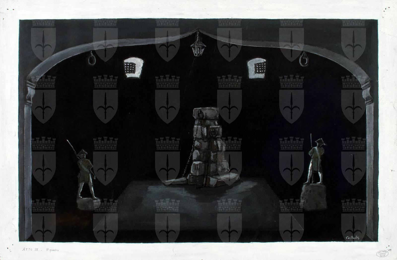 Bozzetto scenografico per I dialoghi delle carmelitane, opera di Francis Poulenc, prima rappresentazione 23 novembre 1957, Teatro Comunale Giuseppe Verdi Trieste, regia di Franco Enriquez