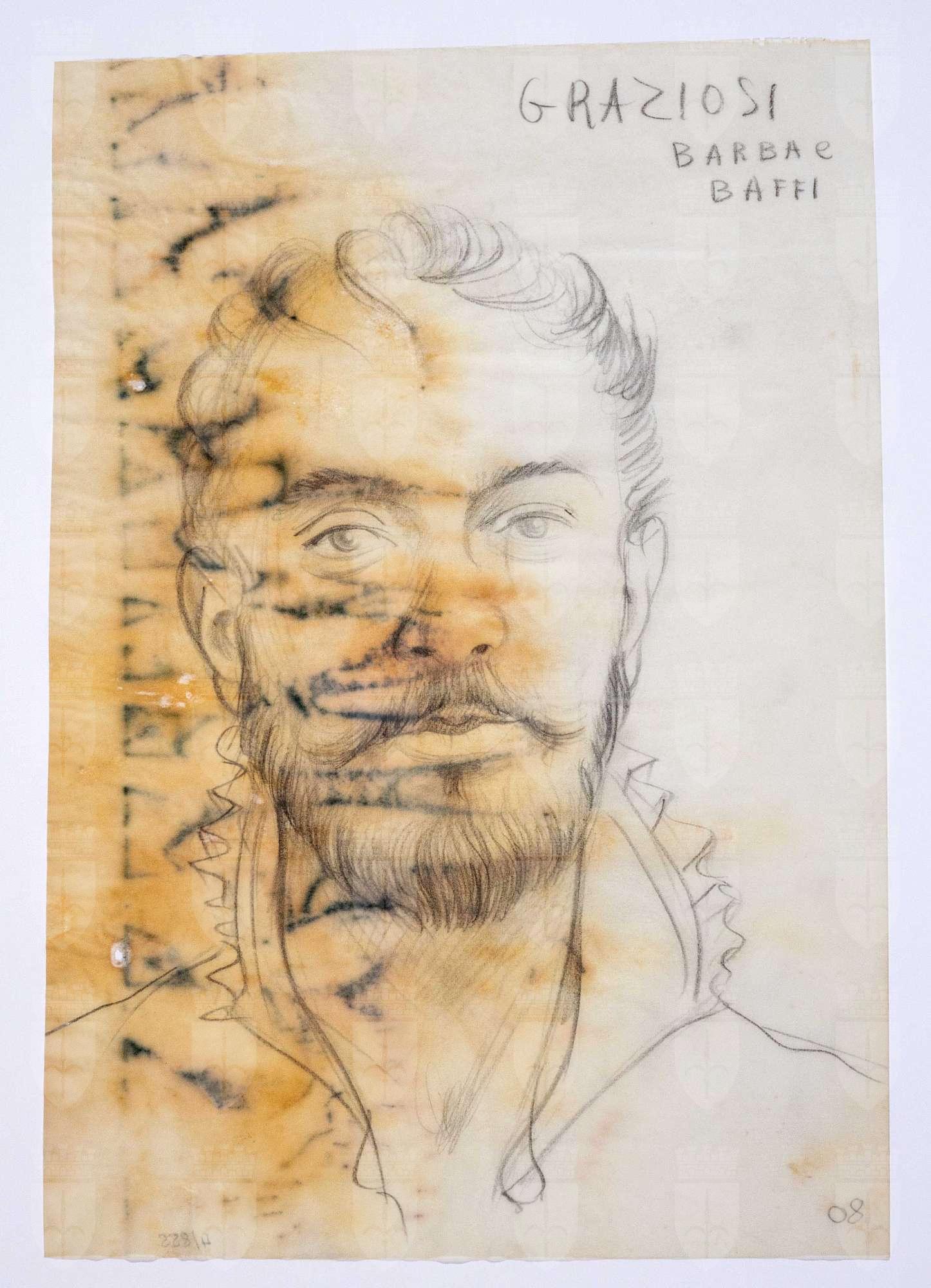 Il gioco dei potenti, libero adattamento di Giorgio Strehler da Enrico VI, dramma storico di William Shakespeare, in 15 atti e 2 giornate. Ritratto di testa maschile di fronte, a capo scoperto con barba e baffi