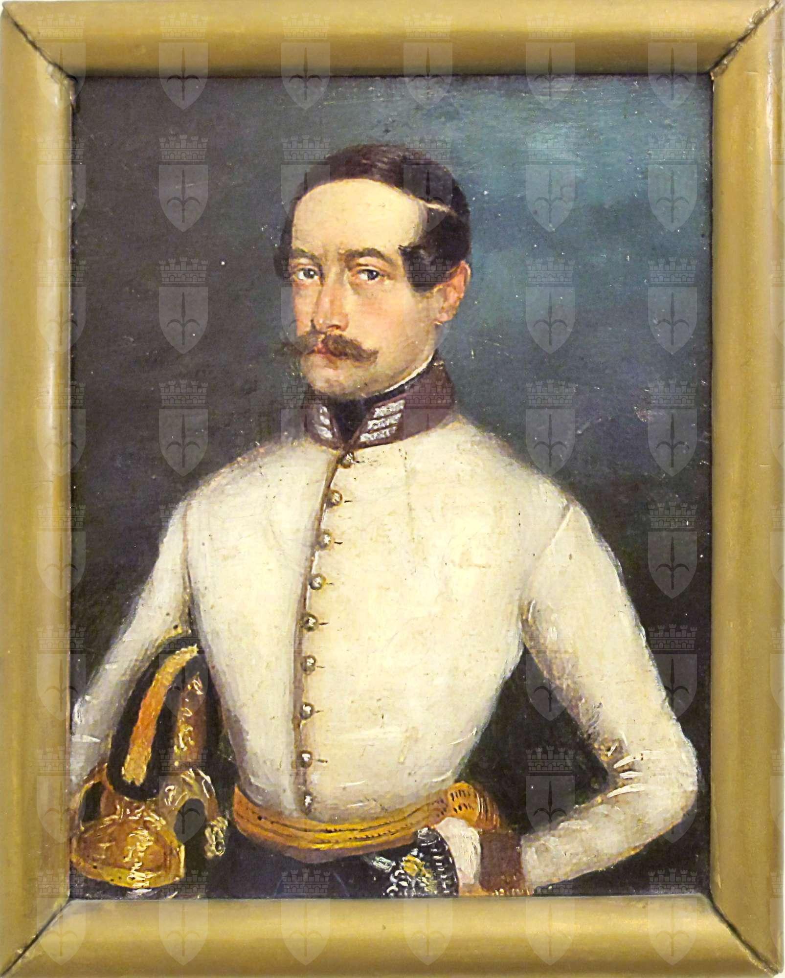 L'opera restituisce il ritratto a mezzo busto, girato di tre quarti a sinistra, di Giuseppe Holstein in divisa da ufficiale dei Dragoni, contro un fondo scuro. Indossa la giacca chiara dell'uniforme, a un solo petto, con una fila di bottoni; collo e polsini rossi con i gradi. Il busto è evidenziato dalla fascia (Feldbinde) di gallone dorato di colore giallo e nero (i colori della monarchia). Sotto il braccio destro, tiene l'elmo crestato in cuoio nero, detto Dragonenhelm. Opera modesta databile alla metà del XIX secolo.