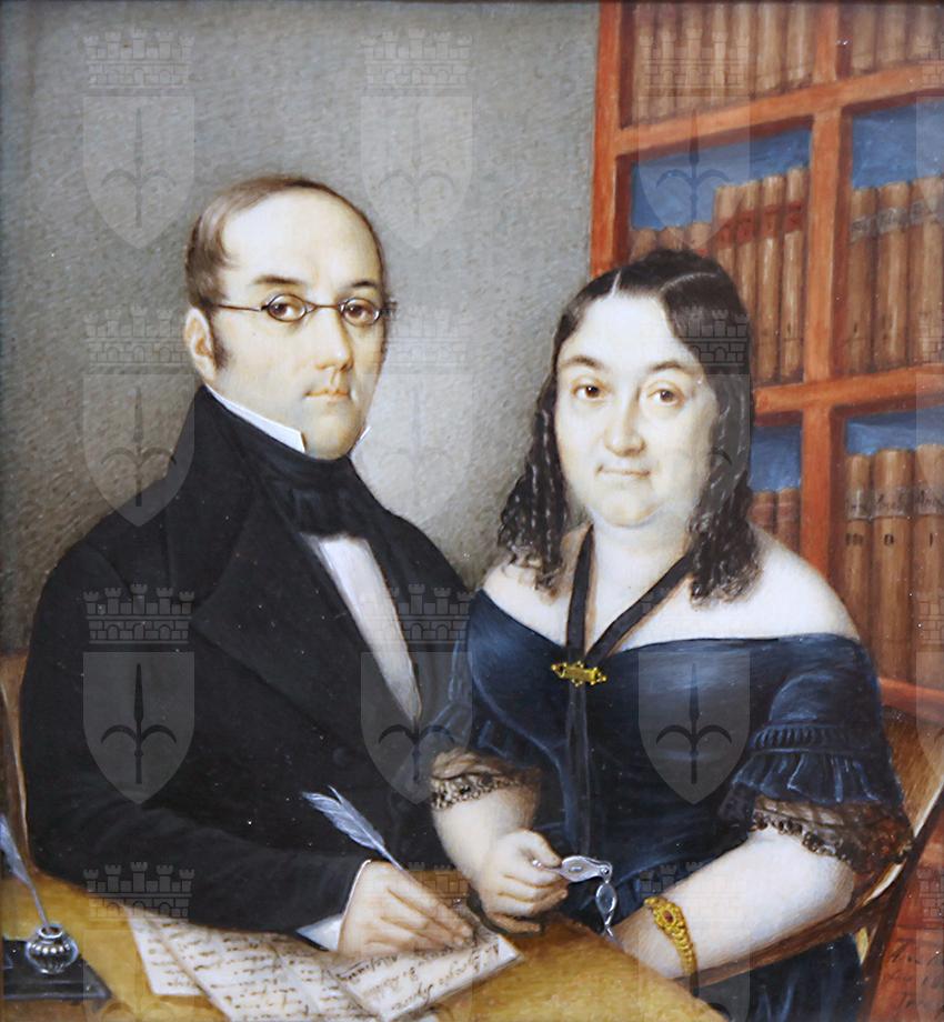 La miniatura, firmata e datata a destra A. de Castro/ fece 1840/ Trieste, ritrae una coppia, seduta a un tavolino in un interno, arredato con una libreria. L’uomo tiene in mano una penna è ha davanti a sé dei fogli e un calamaio. Accanto la donna, tiene in mano un pince-nez. L’opera, per la firma, è ascrivibile con certezza ad Andrea de Castro (Pirano, 1806-Trieste, 1884), ritrattista miniatore e fotografo, celebre per aver ritratto la nobiltà e la classe borghese triestina nel XIX secolo. In base all’iscrizione sulla lettera, il soggetto del doppio ritratto è stato identificato nei coniugi Baldini. Difficile identificare il profilo di Vincenzo de Baldini, che forse va cercato nella cerchia dei letterati triestini della prima metà dell’Ottocento. Forse potrebbe essere l’autore de la Risposta delli Marchesi Elio, e Federico fratelli Gravisi q.m Matteo; il secondo anche come Tutore, e curatore del Marchese Girolamo altro Fratello all'Allegazione delli Marchesi Gio. Antonio Canonico, Giuseppe e Maddalena fratelli, e sorella Gravisi q.m Marchese Matteo Trieste, edita nel 1798. Si registra tuttavia che nel 1847 esisteva un Vincenzo Baldini capitano di brigantino austriaco (Listino dei bastimenti partiti dal Porto-Franco di Trieste 1847, p. 54).