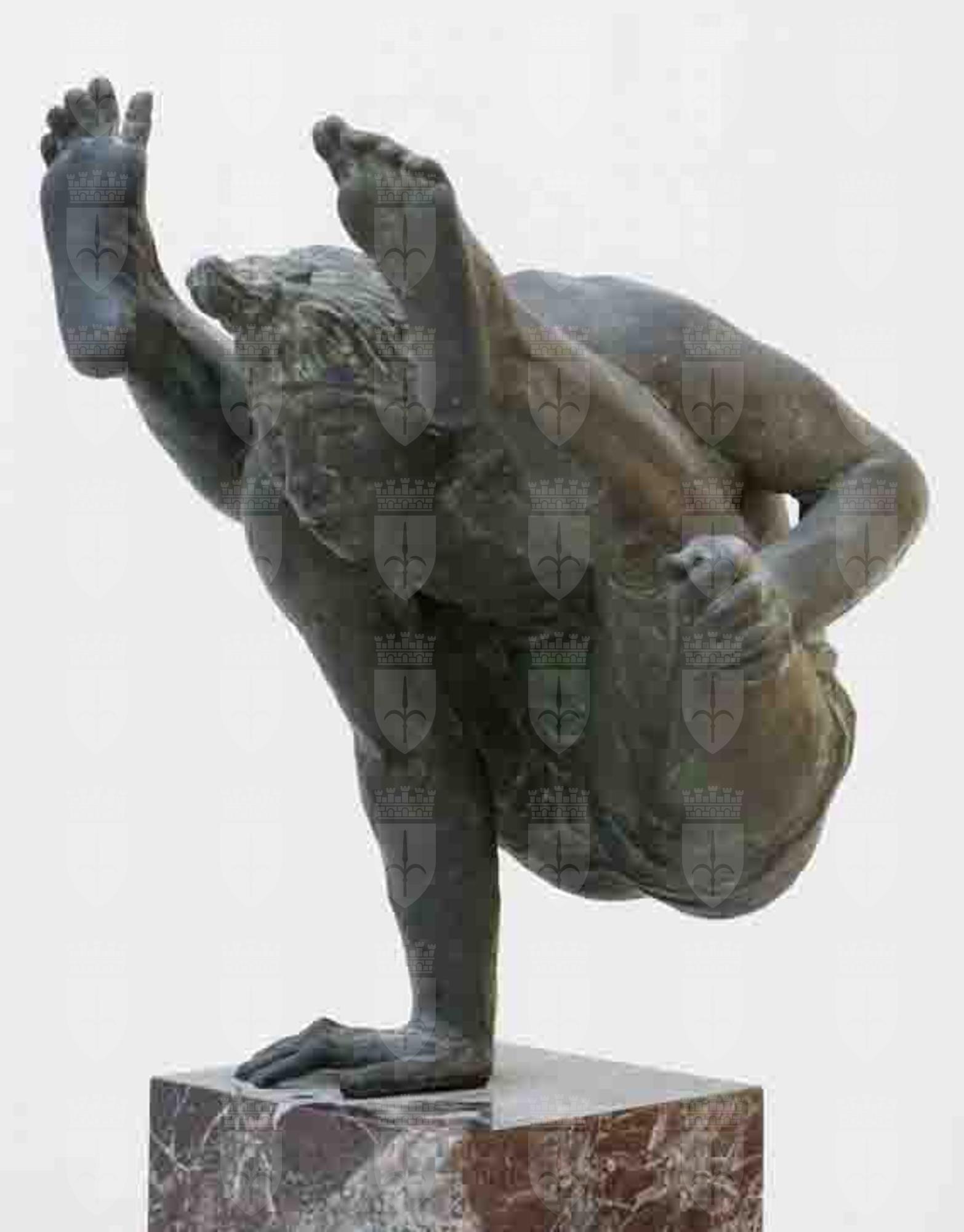 L’"Acrobata cinese", di cui esiste anche una versione in cera di proprietà privata, viene realizzato da Minguzzi all’età di 26 anni e presentato alla Biennale di Venezia del 1942, dove lo scultore ha una sala personale. Il Museo Revoltella lo acquista nella medesima occasione per la somma di 6.000 Lire, scegliendolo tra le dieci sculture – tra cui il "Ritratto della madre", il "Tobiolo" e un altro "Acrobata" – quattro targhe in bronzo e sei disegni a penna. Definito da Carlo Pirovano «un bronzo pompeiano reinventato in una bottega secentesca», è uno dei primi lavori dedicati alla rappresentazione del movimento, che affascinerà l’artista durante tutta la sua carriera. L’acrobata, assieme al contorsionista, alla ballerina e a vari tipi di animali, gli permettono di studiare la tensione dinamica dei muscoli e l’equilibrio delle masse plastiche. Nel bronzo in esame il busto chinato in avanti e la tensione del collo e dei tratti del viso, impegnati nello sforzo di sollevare la testa, ricordano quelli del noto "Centometrista" (1935) di Arturo Martini, della Galleria di Ca’ Pesaro di Venezia, ma la forza espressiva dell’intera figura, che si sostiene in equilibrio su una sola mano, rimanda a molteplici modelli scultorei del passato rivisitati in chiave moderna, come il romanico padano di Wiligelmo e di Benedetto Antelami. Con il suo espressionismo talvolta popolare e grottesco, a metà del Novecento Minguzzi ottiene diversi riconoscimenti: nel 1950 gli venne assegnato ex aequo il gran premio di scultura della Biennale di Venezia e nel 1956 vince il Premio Roma alla VII Quadriennale romana. Altri successi di questi anni sono il primo posto al concorso per la quinta Porta del Duomo di Milano ed il terzo posto al concorso internazionale di Londra per il "Monumento al prigioniero politico ignoto" (1953). Nello stile della maturità unirà la semplicità primitiva della forma alla forza istintiva del modellato, creando talvolta suggestivi contrasti tra masse volumetriche e strutture filiformi. Documenta questa evoluzione stilistica anche una delle ultime versioni dell’"Acrobata" cinese, eseguita nel 1990 e vicina per posa e dimensioni al bronzo del Revoltella, ma molto differente sul piano formale per la resa sommaria dei volumi e delle superfici.