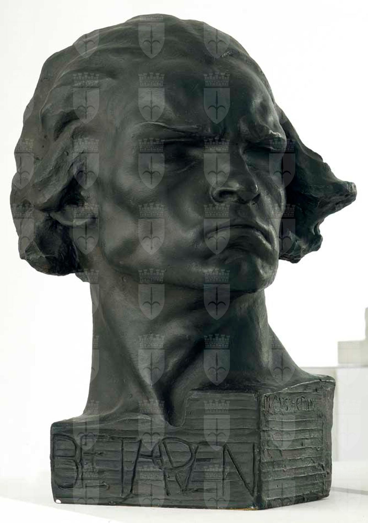 "Beethoven", entrato nelle collezioni museali nel 1991, documenta il periodo di formazione dell’artista. Ancora legato al gusto locale per quanto riguarda la ritrattistica, il giovane Mascherini prova a misurarsi anche con la tradizione iconografica importante, scegliendo un soggetto che ispirò prima di lui molti artisti. Il francese Emile Antoine Bourdelle, rimasto colpito dalla personale somiglianza con il genio romantico, realizzò un’ottantina di sculture raffiguranti il celebre compositore, come un musicista crea diverse variazioni su un tema. Il tedesco Max Klinger, invece, concepì il suo "Beethoven" come incarnazione del divino Zeus, nudo, con il pugno serrato e lo sguardo sollevato. Il marmo policromo, l’opera più celebre dello scultore tedesco, fu esposta in occasione della XIV Mostra della Wiener Sezession del 1902 assieme all’omonimo fregio di Gustav Klimt. Nel 1925 Mascherini presentò in diverse occasioni la sua versione in gesso, che aveva ipotizzato di intitolare "Genio della nona", raccogliendo i consensi della critica. Dieci anni più tardi Marino Marini dedicò il primo importante articolo allo scultore sulla rivista friulana «Panarie». Con un preciso e dettagliato elenco il critico passava in rassegna le opere più significative del giovane artista. Per il "Beethoven" Marini si soffermò sull’aspetto decorativo e così descrisse l’opera: «Il disegno è estroso, forma un bell’arabesco: appunto è un bell’arabesco decorativo e secessionista, ma non un ritratto, non certo scultura pura e semplice». Per le opere di questo genere il critico denunciava il forte debito di Mascherini nei confronti del coetaneo Franco Asco, presso il quale si era formato dal 1924 e grazie al quale si era avvicinato all’opera di un altro artista, Ivan Meštrović, noto in Italia dopo la presenza all’Esposizione dell’Arte Mondiale di Roma del 1911. Ma per la produzione di questi anni punto di riferimento per Mascherini fu anche Alfonso Canciani, suo maestro in età giovanile, aggiornato sulle tendenze della scultura tedesca come rivela il "Busto" di Richard Wagner, realizzato in più esemplari marmorei.