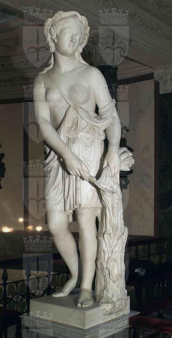 La figura allegorica dell’Estate porta la firma di Adriano Bertolucci, erroneamente scambiato per Antonio, scultore di cui si sa ben poco, se non che appartenesse ad una famiglia di statuari carraresi (Giovanni Antonio, Filippo, Lorenzo Bertolucci), che nel 1808 erano aiuti alla Scuola di Scultura della Banca Elisiana diretta da Lorenzo Bartolini presso l’Accademia di Carrara. Adriano si iscrisse alla stessa scuola nell’anno accademico 1845-46 e la frequentò per un decennio circa. In quel periodo la produzione scultorea carrarese risentiva ancora fortemente dell’impronta neoclassica, prediligendo lo studio della statuaria antica sui modelli viventi: la figura femminile rappresentante l’estate, una giovane seminuda che miete il grano, sembra infatti più una divinità greca che una giovane contadina al lavoro. L’opera viene citata, assieme alle altre tre sculture situate nel vestibolo del secondo piano del Palazzo di Pasquale Revoltella, nella guida Tre giorni a Trieste del 1858: «Quattro grandiose statue ai lati, in marmo di Carrara, rappresentano le quattro stagioni, e sono lavorate dagli allievi di quell’accademia, sotto la direzione del prof. Bonani, sui modelli di Canova, di Thorwaldsen, di Tenerani». Proprio di quest’ultimo era stato allievo Pietro Magni a Roma, e questo induce a pensare, che lo scultore milanese abbia giocato un ruolo nella scelta delle sculture in marmo fatta da Revoltella per il piano nobile della sua abitazione. Rispetto alle altre statue del gruppo, l’opera di Bertolucci, che pur dimostra di aver acquisito consapevolezza e una certa maturità nell’esecuzione, appare piuttosto rigida.