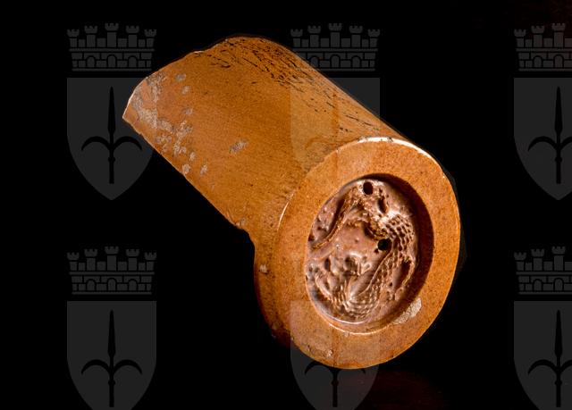 Spezzone di tegola terminale di spiovente di un tetto, di forma circolare, decorato a stampo con la figura di un drago a cinque artigli. L'invetriatura di tonalità giallo ocra, colore imperiale, e la presenza del drago a cinque artigli (long), anch'esso emblema esclusivo dell'Imperatore, confermano la sua provenienza da un edificio imperiale. Il manufatto è peraltro identico alle tegole terminali di copertura, poste alla base dello spiovente, nella Città Proibita di Pechino. Tegole simili vengono prodotte fin dall'inizio della dinastia Ming, nel XIV secolo. Assieme ad un altro frammento (inv. 21321), elemento di decorazione di un tetto, in terracotta invetriata verde con profili gialli, è stato probabilmente prelevato dalle rovine di uno dei palazzi di Wanshou Shan, la Collina della Longevità, nei dintorni di Pechino, costruiti tra il 1662 e il 1795 e distrutti nel 1860. L'identificazione è suggerita, come segnala Luisa Crusvar (in Il Civico Museo d'Arte Orientale di Trieste, 2002, p. 12 e 62-63), dalla presenza di questo spezzone di tegola nell'elenco del dono destinato dall'ufficiale della Marina austriaca Guglielmo Mörth al Museo di Antichità nel 1885, alla voce "Frammenti diversi in ornati in rilievo provenienti dalle rovine del palazzo di Valsuscian [sic] presso Pechino".