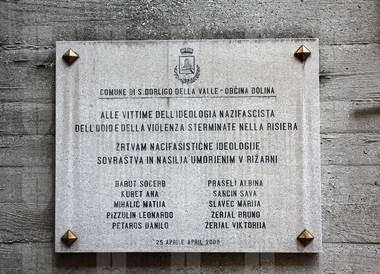 Lapide del Comune di San Dorligo della Valle in memoria delle vittime della Risiera di San Sabba