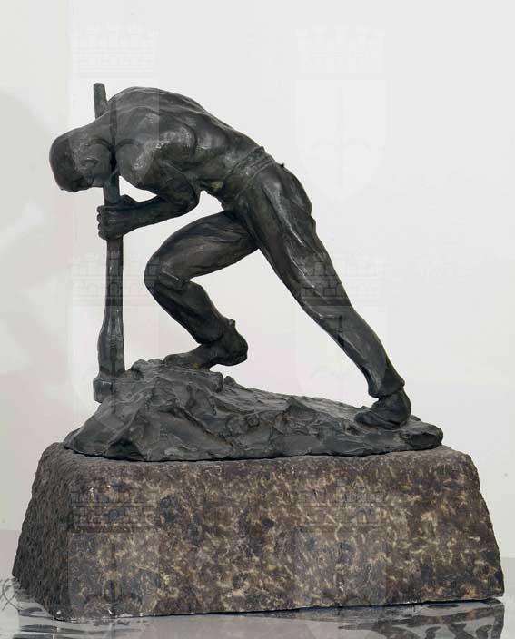 Nel verbale del Curatorio dell’11 febbraio 1935 si fa cenno all’acquisto di quest’opera su proposta dello stesso autore. Il lavoratore si aggiungeva così, per la somma di 3.000 Lire, ad altre due opere di Güttner conservate al Museo Revoltella ("Ritratto del barone Rosario Currò" e "Mio figlio Bruno" ritratto su medaglia bronzea). Vittorio Güttner, che fin dal 1896 si era stabilmente trasferito nella capitale bavarese, si era inizialmente formato presso lo studio del pittore Giuseppe Savorgnani (1881) per poi preferire la scultura, seguendo le lezioni di Francesco Pezzicar (1883), da cui derivò senz’altro la propensione all’interpretazione veristica dei soggetti scolpiti, in linea con la tendenza naturalistica ottocentesca, che caratterizzava l’opera del più anziano maestro triestino. Pressoché coetaneo degli amici artisti concittadini Carlo Wostry, Umberto Veruda e Isidoro Grünhut che, come lui, in quegli anni scelsero l’Accademia di Monaco di Baviera per proseguire la propria formazione, in un ambiente decisamente di più ampio ed aggiornato respiro artistico-culturale, Güttner riflette nel suo linguaggio, divergendo da Pezzicar, le istanze più innovative della ricerca artistica, sviluppatasi tra gli ultimi due decenni dell’Ottocento e l’inizio del nuovo secolo. Nella potente e vigorosa figura dello svangatore, pur di ridotte dimensioni, lo scultore triestino aderisce al filone artistico consacrato al lavoro che, a partire dalla produzione dello scultore belga Costantin Meunier, celebratore del lavoro in diverse forme artistiche fin dagli ultimi decenni dell’Ottocento, divenne soggetto ampiamente e variamente trattato in arte, soprattutto in seguito alla mostra personale dell’artista belga alla Biennale veneziana del 1897. Peraltro, negli stessi anni in cui Güttner probabilmente plasma il suo lavoratore, il brazzanese Alfonso Canciani realizza i "Fonditori" (1907), due raffinati bronzetti anch’essi appartenenti al Museo Revoltella che, a differenza del lavoratore di Güttner dalla superficie vibratile, visibilmente dinamico e concentrato nel suo impeto lavorativo, sono raffigurati in posizione di riposo, autorevoli e dignitosi come divinità moderne, nella superficie levigata della loro agile fisionomia.