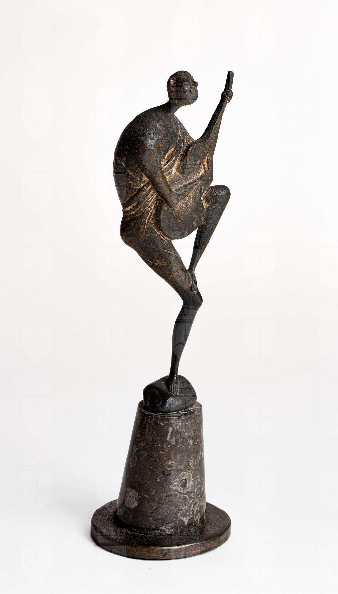 Tra le 46 opere d’arte destinate al Museo Revoltella, facenti parte dell’importante donazione Lanieri del 2018, si contano anche sette pregevoli bronzetti, tre dei quali realizzati da Marcello Mascherini. Pubblicate da Panzetta alla fine degli anni Novanta, le tre sculturine contribuiscono a documentare al Museo Revoltella, arricchendola, la produzione di questo straordinario artista, già consistentemente rappresentato nella nostra galleria. Inoltre, affiancando l’"Estasi" e il "Volo dell’allodola", i due bronzetti realizzati da Mascherini nei primi anni Trenta ed acquisiti entro il 1937, le tre operine del lascito Lanieri, assegnate rispettivamente al 1940 ("Baccante"), al 1958 ("Musico") e al 1971 ("Icaro"), consentono di rilevare con puntualità e immediatezza le diverse modulazioni stilistiche del suo linguaggio plastico, nei diversi decenni, anche in questo specifico formato. Folgorato, per così dire, dalle sensazioni provate al cospetto dei bronzetti etruschi al Museo Etrusco di Villa Giulia, lo scultore scoprì in questo modo «la perfetta aderenza tra la vita e l’arte. Quell’eternare le cose più semplici che circondavano la vita, quel senso quasi musicale interpretato con un’armonia suggerita dal ritmo universale che guida il Cosmo mi fecero comprendere che la radice della nostra arte plastica non poteva essere che quella» (Mascherini, ante 1944). A partire quindi dai due bronzetti degli anni Trenta del Museo Revoltella, visibilmente condizionati dagli antichi affreschi della Villa dei Misteri di Pompei, si passa con una certa continuità d’impostazione unita ad elegante valenza rinascimentale alla "Baccante" degli anni Quaranta, impreziosita dal piedestallo decorato, come in altri bronzetti coevi, primo fra tutti la "Venere marina" del 1942, premiata alla Mostra-Premio Donatello. Si riparte poi dall’esempio del "Musico", datato 1958, allungato e affilato nelle sue pur minute proporzioni, ma non troppo dissimile dalle maestose figure muliebri stilizzate e geometrizzanti di quel medesimo decennio, per giungere infine agli esiti dell’ultima fase del suo percorso creativo, corrosivo e tormentato, e ben evidenziato nell’Icaro già collezione Lanieri, di cui esiste anche una versione in argento datata 1971. Si conferma in questo modo il permanere dell’interesse di Mascherini per questa ricercata forma scultorea di minute dimensioni, ben oltre gli anni Trenta, quando il genere del bronzetto di origine arcaica e in accezione rinascimentale veniva ampiamente riscoperto e diffusamente apprezzato.