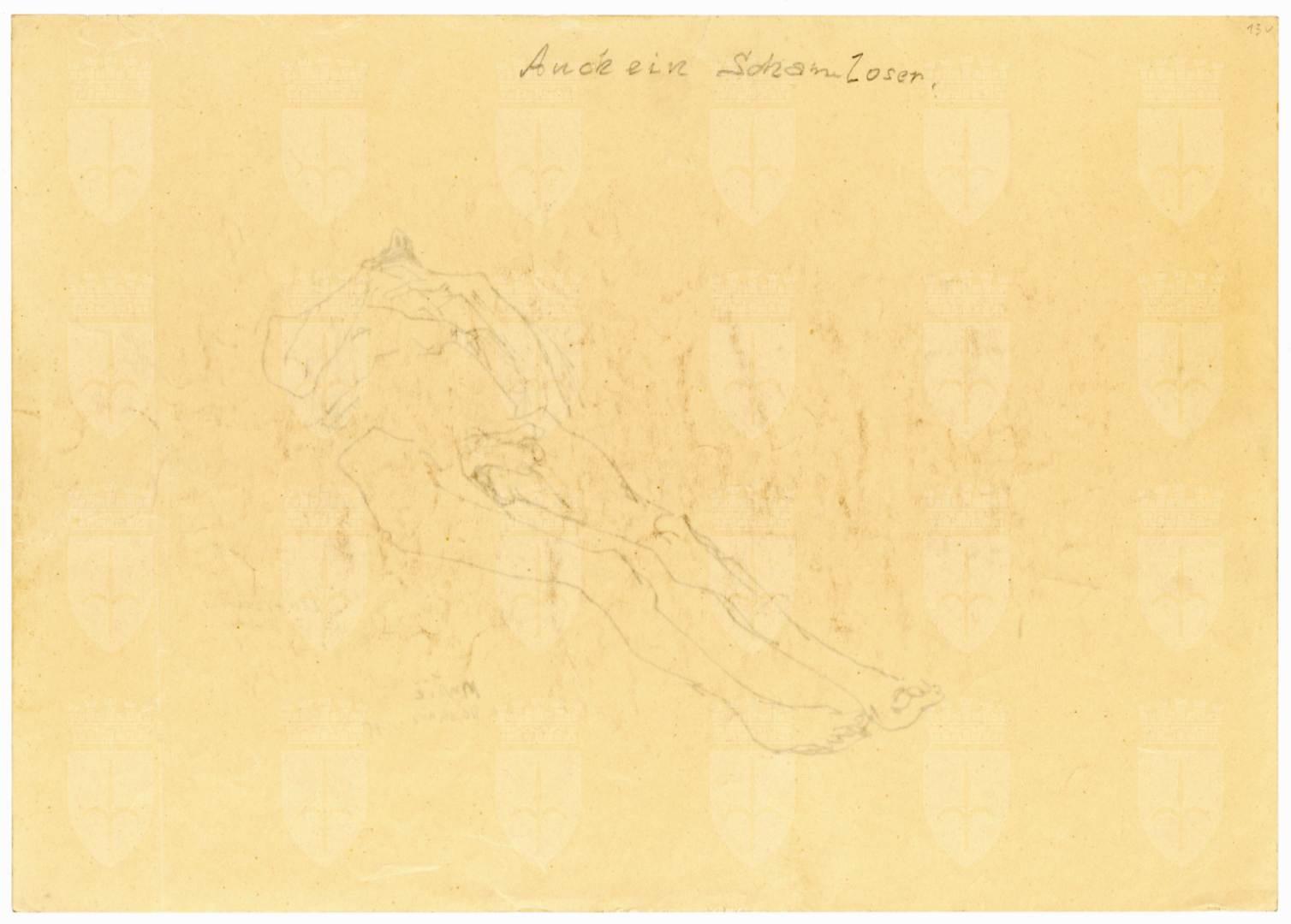 Sul recto è trascritta la firma, il luogo e la data: Mušič Dachau 1945. Sul verso presenta una nota manoscritta a matita “Auch ein Schamloser” (Un altro senza pudore)
