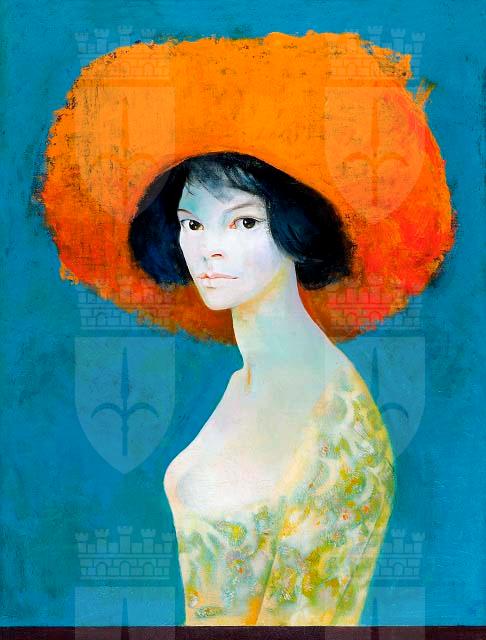 L'Autoritratto con cappello arancione, recentemente donato al Museo Revoltella, fu esposto alla Galleria Torbandena nel 1968, in occasione della mostra personale di Leonor Fini. Realizzato nel momento della riconversione stilistica della pittrice, in nome di una maggior definizione dei contorni e di solidificazione delle forme, l'autoritratto svela una volta di più la stravaganza e la malia del soggetto rappresentato. L'esuberanza del contrasto cromatico, caratteristica eccellente di questa immagine incisiva e sensuale, restituisce il ritratto psicologico della protagonista, artista irrequieta, curiosa, viaggiatrice instancabile, legata d'amicizia a innumerevoli personaggi illustri del mondo artistico e culturale europeo. Nel corso della sua lunga e versatile attività artistica sperimentò anche la decorazione teatrale, curando scenografie e costumi per balletti e per melodrammi. Artista dalla personalità prorompente (Max Ernst la definiva "furia italiana") e fantasiosa, Leonor Fini nasce a Buenos Aires da Herminio Fini, argentino di origini beneventane e dalla triestina Malvina Braun. Trascorre l'infanzia e l'adolescenza a Trieste con la madre e la sua famiglia di origini tedesche che le trasmettono una cultura raffinata e di respiro europeo. "Verso i 13-14-15 anni - racconta l'artista - preferivo dipingere che studiare; provavo diverse materie: scarabocchi con incrostazioni di buccia d'uovo con pasta di lievito, pasta di pane, perline, grani di riso, segatura, zucchero, tutto quello che mi capitava sottomano" (Leonor Fini, testo di presentazione alla mostra del 1997, Trieste, Galleria Rettori Tribbio 2). Di natura indipendente, a diciassette anni lascia la famiglia per recarsi a Milano dove, oltre a mantenere una stretta amicizia con gli artisti suoi concittadini Carlo Sbisà e Arturo Nathan che qui esponevano, ha l'opportunità di conoscere pittori innovativi quali Carrà, Sironi, de Chirico e Achille Funi, che la rendono sensibile alle tematiche classiciste. "A Milano - narra ancora la Fini - vidi nello studio di Funi il suo classicismo che associai agli affreschi di Luini nella Villa Palucca a Brera che mi hanno sempre molto incantato". Rientra a Trieste soltanto in occasione delle mostre sindacali (dal 1927 al 1930). Nel 1931 si stabilisce a Parigi (a Le Marais) e già nell'anno successivo espone alla Galerie Bonjean (di cui era direttore Christian Dior). Entra in contatto con i protagonisti del movimento surrealista (tra questi, Paul Eluard, Max Ernst e Georges Bataille), ma non vi aderisce perché ama individuare la propria strada in solitudine e, in generale, le "appartenenze" la infastidiscono. Tuttavia, nel 1936, esporrà con il gruppo a Londra e a New York. Dopo aver esordito con delle figure femminili allungate e intrecciate tra loro, ben definite e precise e da lei definite "Iniziali", riecheggianti la pittura surrealista, la Fini elabora forme animali e vegetali, "talvolta umane al limite delle metamorfosi", in cui, come lei stessa ha affermato, "il modo di fare è difficilmente percettibile". Nel corso degli anni '50 l'artista muta radicalmente il suo stile, preferendo "muovere, rovesciare, tormentare la materia ordinata" realizzata fino a quel momento, ma alla quale tornerà immediatamente dopo per non abbandonarla mai più. Ecco dunque una serie di dipinti che la critica assegnò al cosiddetto "periodo minerale". "Fu una tentazione dettata dal "tachisme"? -si domanda in quella occasione l'artista- "Io non credo, perché ero già quasi passata di là gettando sulla carta o la tela posta per terra della pittura liquida e camminandoci sopra. Questi graffi, striature, guizzi - conclude quindi la Fini- a me non sembravano "minerali", ma quasi le impronte nascoste del periodo precedente".