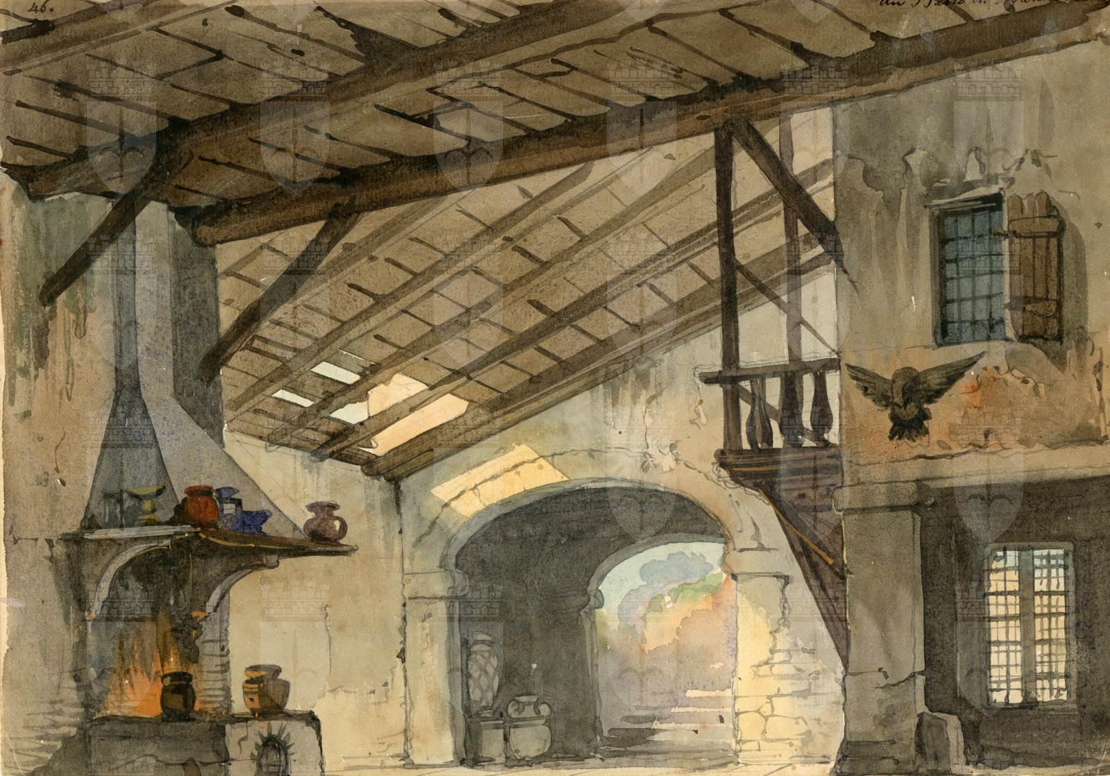 Un ballo in maschera, opera di Giuseppe Verdi,1. atto, 4. scena, interno di abitazione