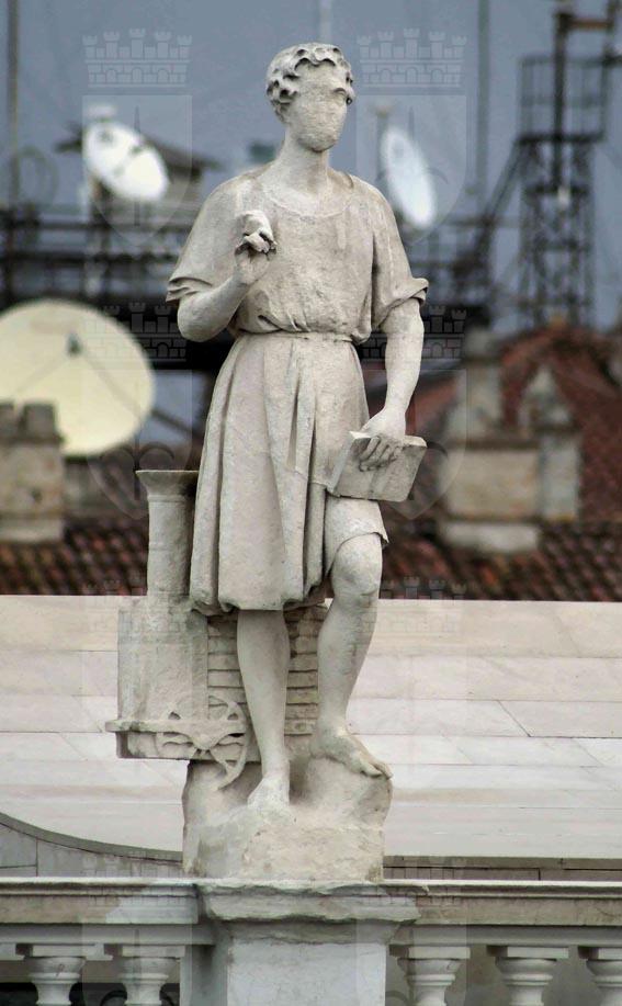Le sei statue poste a coronamento di Palazzo Revoltella furono completate sicuramente entro il luglio del 1857, quando vengono citate per la prima volta sulla stampa locale. Nel progetto firmato da Friedrich Hitzig per Palazzo Revoltella del 1853 sono previste, sull’attico del fronte principale, sei statue dall’iconografia non chiaramente identificabile (Hitzig 1853), mentre nel medesimo progetto pubblicato in volume, nel 1864 le statue sono quattro e rappresentano le stagioni (Hitzig 1864). La realizzazione finale, affidata a Bosa, si indirizza invece ad una programmatica manifestazione della “morale borghese” di Pasquale Revoltella, in cui vengono celebrati i fattori che concorsero alla sua fortuna: Commercio, Industria, Ingegno e Navigazione sul fronte principale e Calcolo ed Economia sui prospetti laterali (rispettivamente di via Cadorna e via Diaz). L’identificazione di tali allegorie, spesso confuse tra loro nelle schede inventariali del Museo, è possibile grazie a due fogli autografi conservati al Museo Correr di Venezia (inv. cl. III n. 2892 e 2893), nei quali ciascuna allegoria è accompagnata da una didascalia che la identifica. Le sculture, improntate a un diligente classicismo, appaiono estremamente danneggiate dagli agenti atmosferici e mutile di alcuni attributi. Il Commercio ha in capo il petaso alato di Mercurio, ma risulta privo del caduceo (presente nel disegno del Correr), che pare di scorgere nella tempera di Alberto Rieger del 1865 raffigurante Palazzo Revoltella (Possamai 2022, p. 46), l’Industria tiene in mano un alveare (anziché la falce raffigurata nel citato disegno) e un martello, l’Ingegno è caratterizzato da penna (di cui ora è mutilo, ma che è visibile nelle schede inventariali degli anni Sessanta), libro e locomotiva (non prevista nel disegno del Correr), la Navigazione appare mutila degli attributi (previsti dal disegno del Correr) della bussola, visibile ancora nelle schede inventariali degli anni Sessanta, e dell’àncora, che si scorge ancora fino al 1913 circa in una foto di Francesco Penco. Sui prospetti laterali sono posti il Calcolo, che srotola un cartiglio, e l’Economia, che regge una borsa piena di denari. Si segnala che nella Rassegna di pittura e scultura dell'Ottocento a Trieste del 1937 è stata esposta una Navigazione di Francesco Bosa di proprietà del Museo Revoltella, di cui si sono perse le tracce. (Rassegna 1937, p.9)
