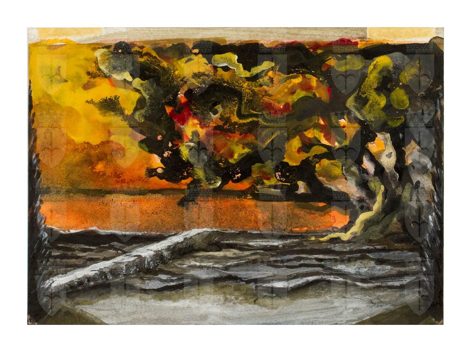 Káťa Kabanová, opera lirica di Leoš Janáček, studio per scenografia, paesaggio con albero