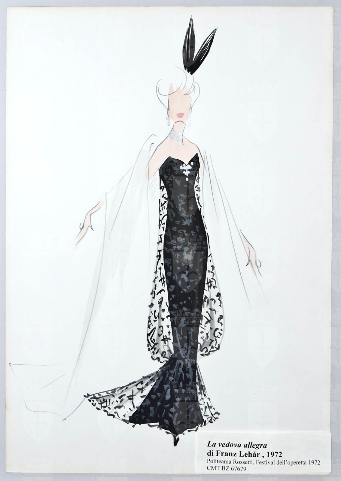 La vedova allegra, operetta di Franz Lehár, figura femminile in abito da sera