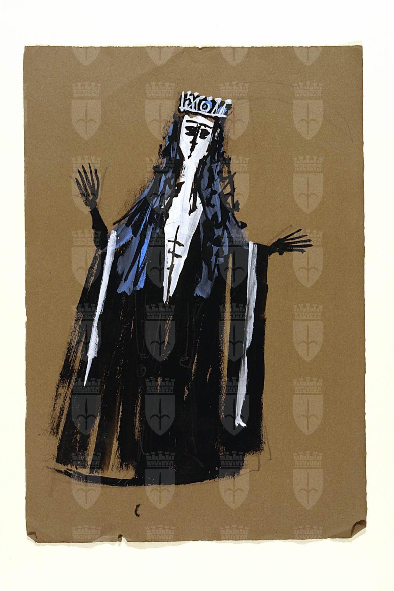 Figurino per La leggenda di ognuno, testo teatrale di Hugo von Hofmannstahl, libera versione di Luciano Budigna. Trieste, Teatro Nuovo 3.4.1958-27.4.1958