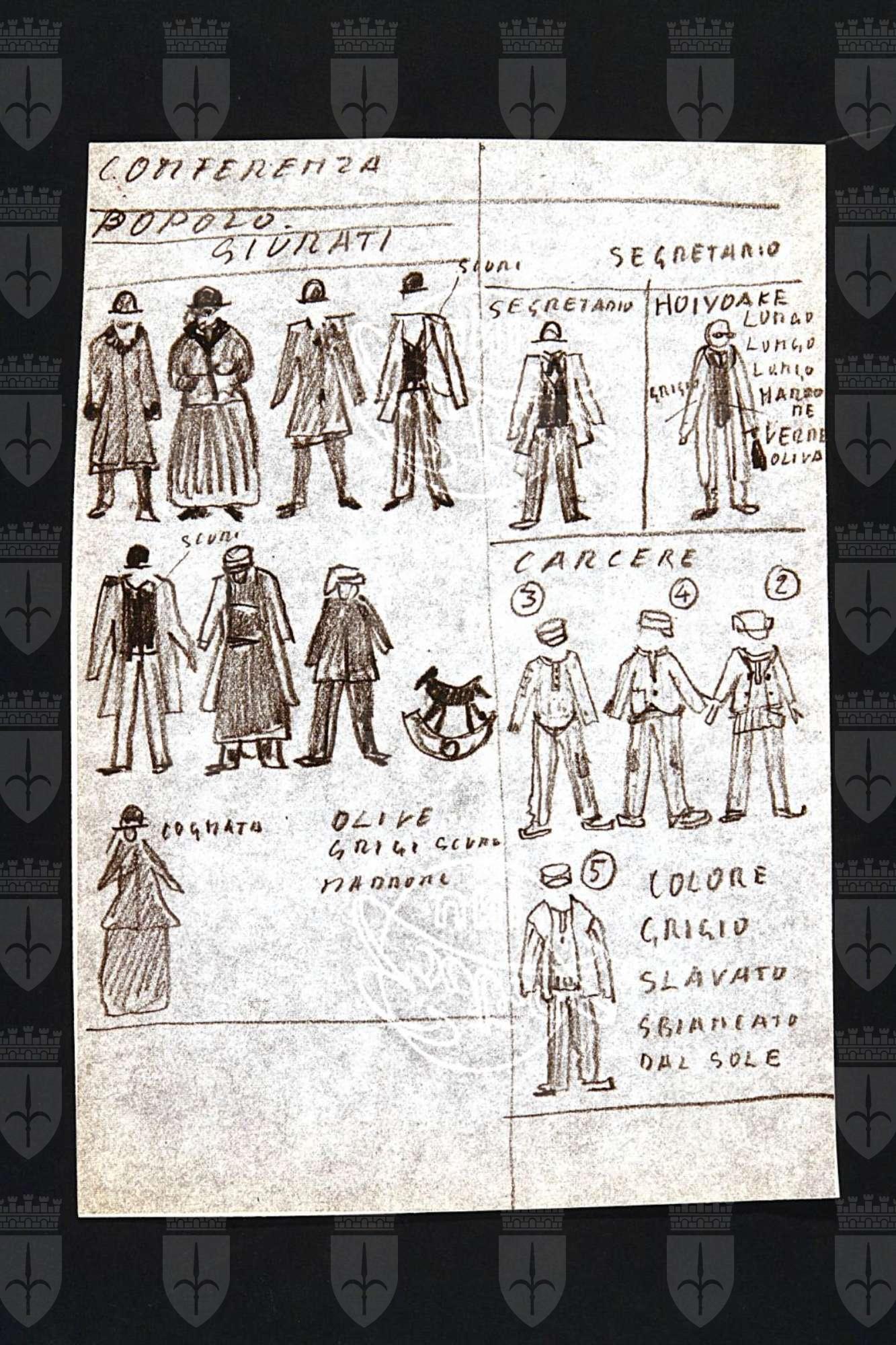 Figurino per Motivo di scandalo e riflessione di John Osborne, traduzione di Paola Ojetti, novità per l'Italia in edizione integrale; regia di Raffaele Maiello. Trieste, Auditorium, 19.01.1996-13.02.1996