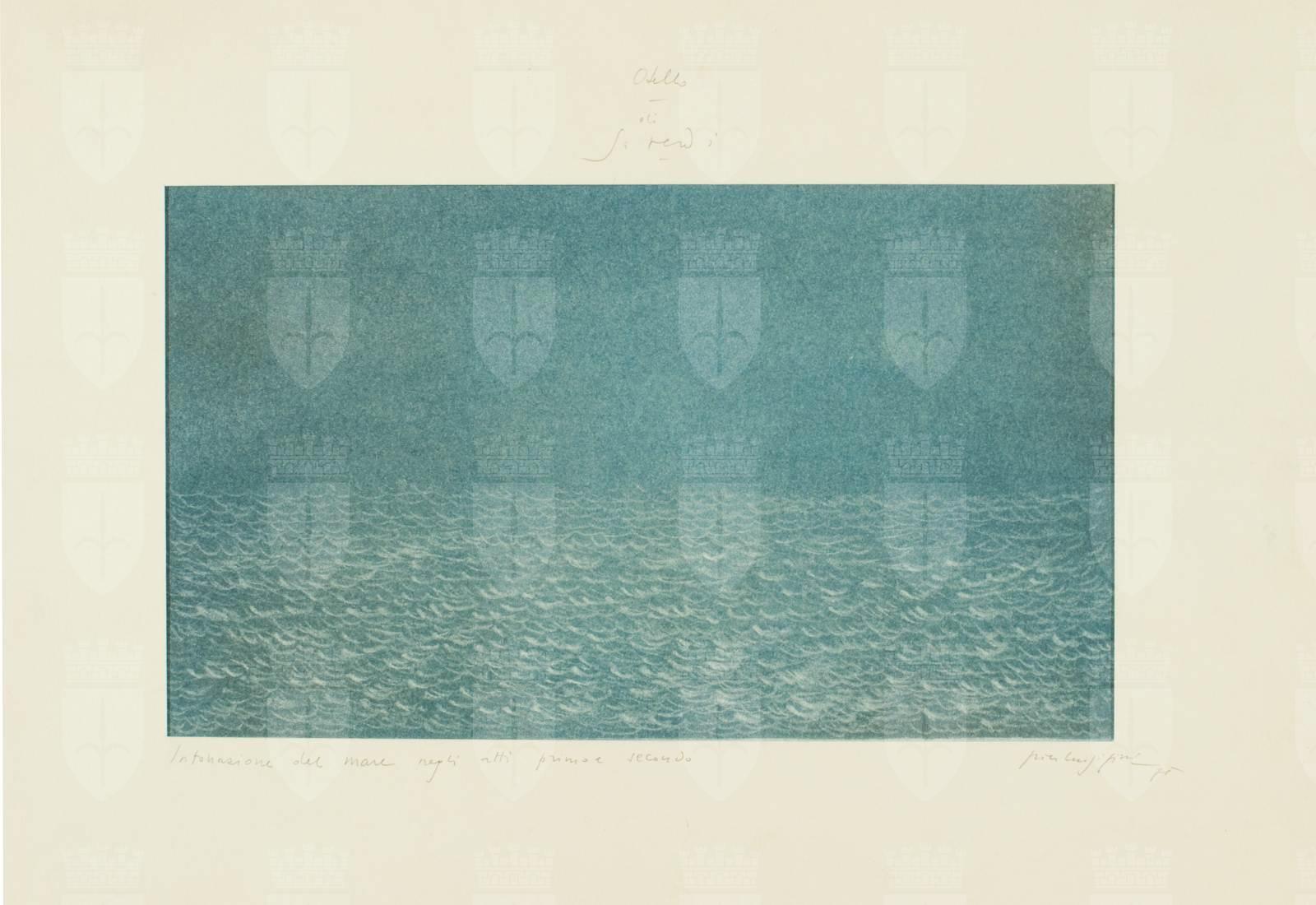 Otello, opera di Giuseppe Verdi, atti I e II. Fondale per cielo e mare solcato da piccole onde
