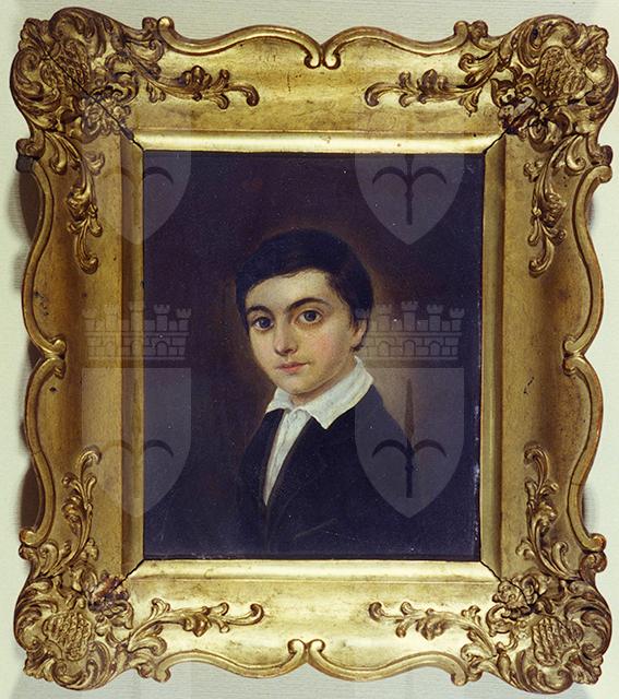 Ritratto di bambino a mezzo busto di profilo sinistro.