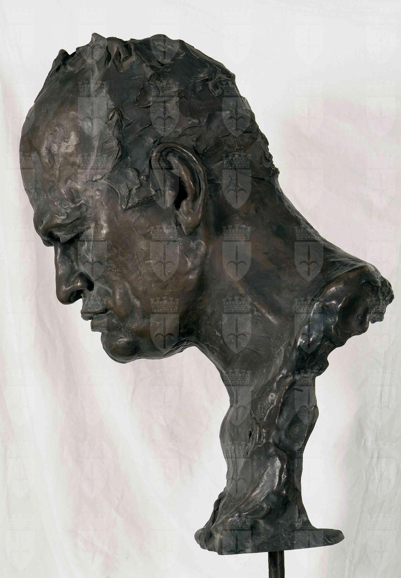 Realizzato nel 1924, anno del delitto Matteotti e della sofferta transizione del governo italiano verso la dittatura, il ritratto del Duce fu offerto al Comune di Trieste da Socrate Stavropulos nell’aprile del 1936, congiuntamente all’altrettanto possente e drammatico ritratto di Friedrich Nietzsche. La donazione al Museo Revoltella del ritratto di Mussolini, poco più che quarantenne, fu annunciata sulla «Rivista illustrata del Popolo d’Italia», supplemento del quotidiano politico «Il Popolo d’Italia», fondato dal Duce. A commento della riproduzione della scultura, pubblicata a tutta pagina, infatti, così si legge: «opera dello scultore magiaro Giustino Ambrosi, offerta dal cittadino ellenico Socrate Stavropulos al Comune di Trieste in segno di ammirazione e di solidarietà col popolo italiano in quest’ora di intrepida resistenza all’iniquo assedio societario» («La Rivista illustrata del Popolo d’Italia» 1936). Il busto di Mussolini entra a fra parte delle collezioni del Museo Revoltella in un momento di cambiamenti storici epocali per l’Italia e l’Europa: a poca distanza dalla conclusione della Guerra d’Etiopia (maggio 1936), che si risolse a favore del nostro Paese, e del progressivo avvicinamento di Mussolini alla Germania nazista (ottobre 1936), ma anche in un momento in cui il consenso popolare al regime fascista si stava incrinando, facendo palesare le prime avvisaglie di un generale risentimento verso il potere. Il noto collezionista triestino, di origini greche, fu grande amico di Ambrosi, del quale stimava «la multiforme espressività artistica nel campo della poesia, della filosofia e dell’arte, manifestando un sincero mecenatismo nei suoi confronti» (De Vecchi, Resciniti 1994). Dal 1952, Stavropulos donò la sua estesa collezione ai Civici Musei triestini che, tra le opere di pittura e di scultura di artisti di diverse origini, epoca e formazione, comprendeva anche un ritratto del donatore realizzato da Gustinus Ambrosi nel 1933, oggi conservato al Civico Museo di Storia Patria. Il ritratto di Mussolini, pubblicato sulla rivista «Emporium» agli inizi degli anni Trenta (nel testo viene citata una versione in marmo oggi conservata a Palazzo Chigi), svela una sofferta e inedita espressività, ben lontana dalla più consueta fisionomia generalmente ravvisabile in più di un migliaio di ritratti del dittatore di Predappio realizzati nel corso del Ventennio.